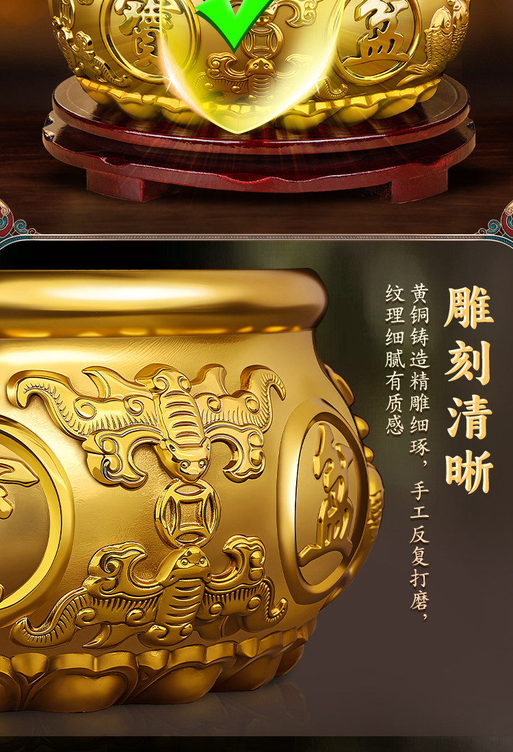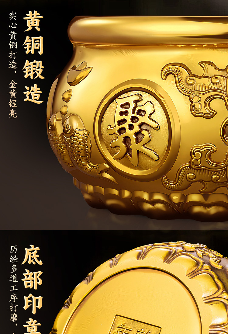 商品名称:聚宝盆摆件招财聚财纯铜家用存钱罐黄铜米缸八方来财店铺开业礼品