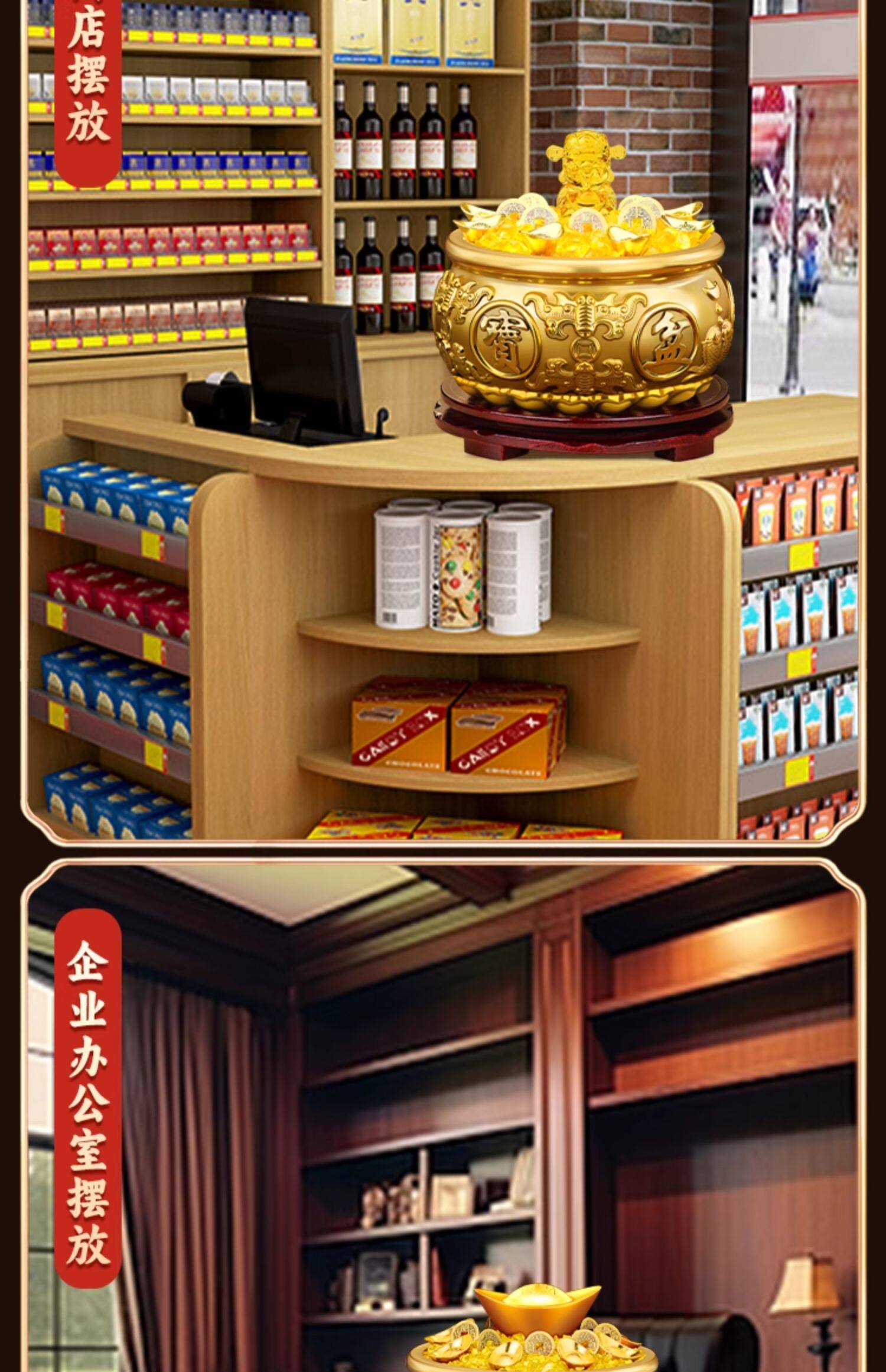 【八宝聚财】14号-精工聚宝盆【升级加厚】(+送财库贴)+送旋转底座