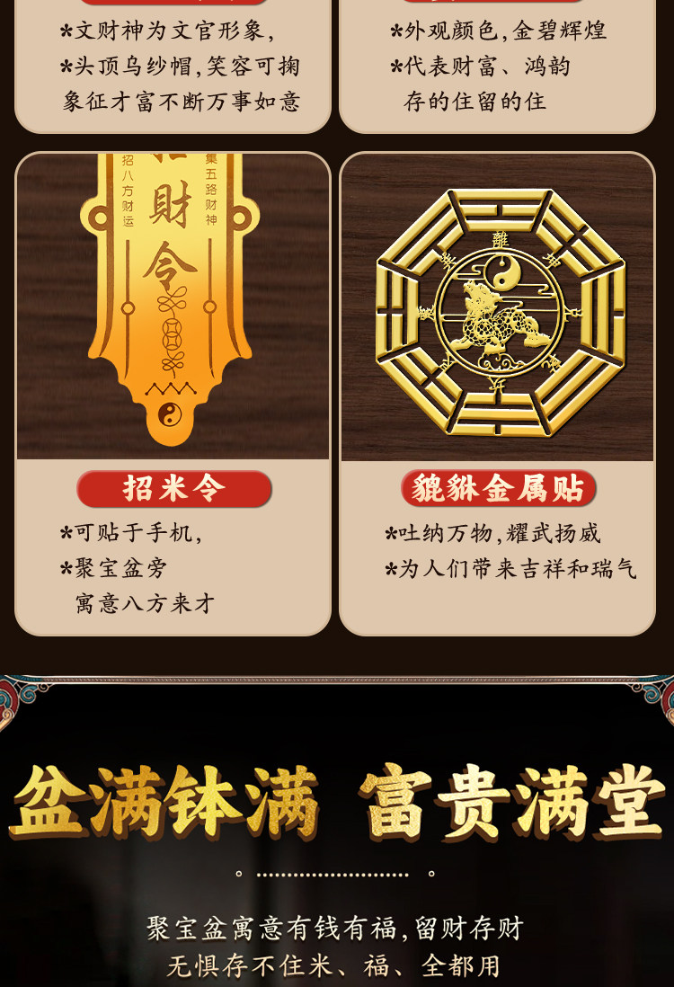 【八宝聚财】11号-精工聚宝盆【升级加厚】(+送财库贴)+送胡桃木底座