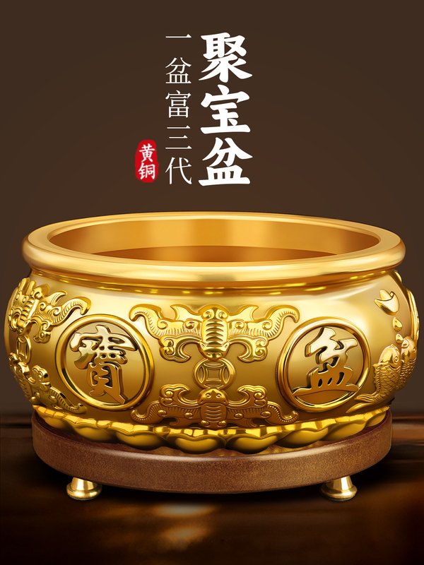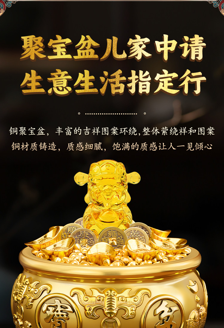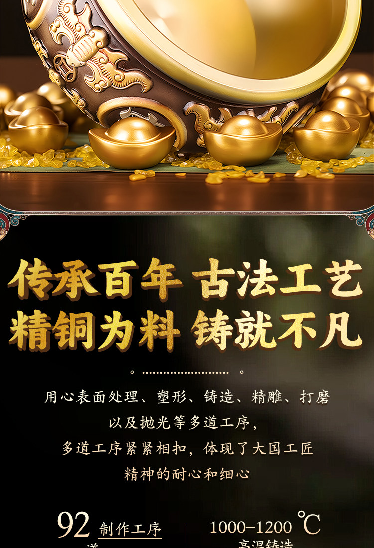 聚宝盆摆件招财聚财纯铜家用存钱罐黄铜米缸八方来财店铺开业礼品