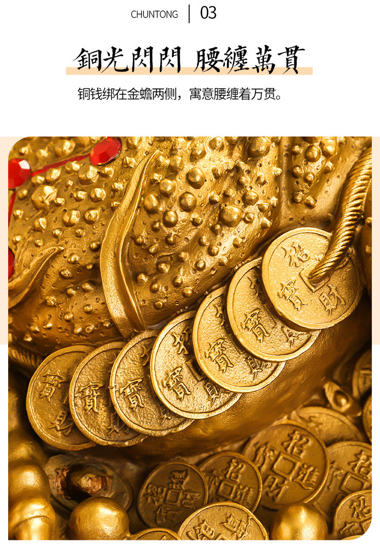 商品名称:黄铜金蟾摆件铜三足三脚金蟾蜍金蝉店铺办公室装饰品客厅开业礼品