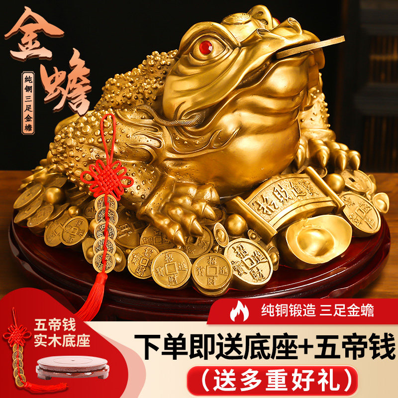 黄铜金蟾摆件铜三足三脚金蟾蜍金蝉店铺办公室装饰品客厅开业礼品