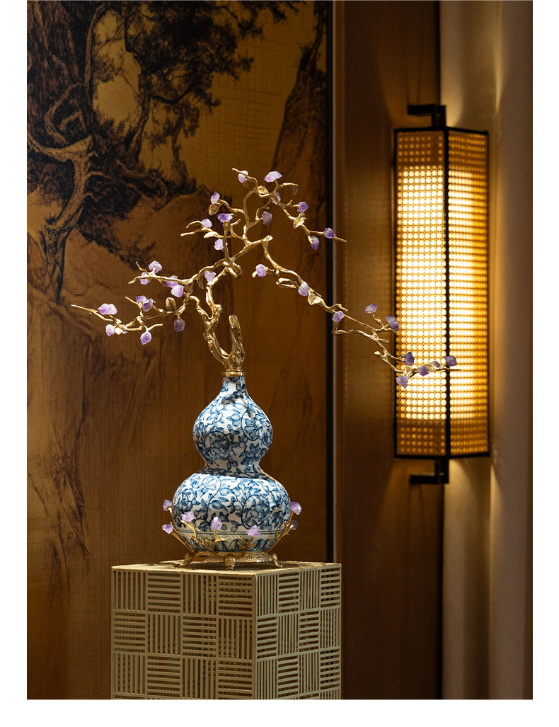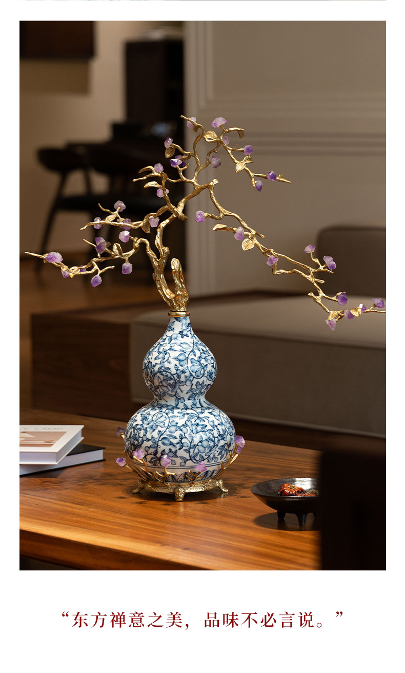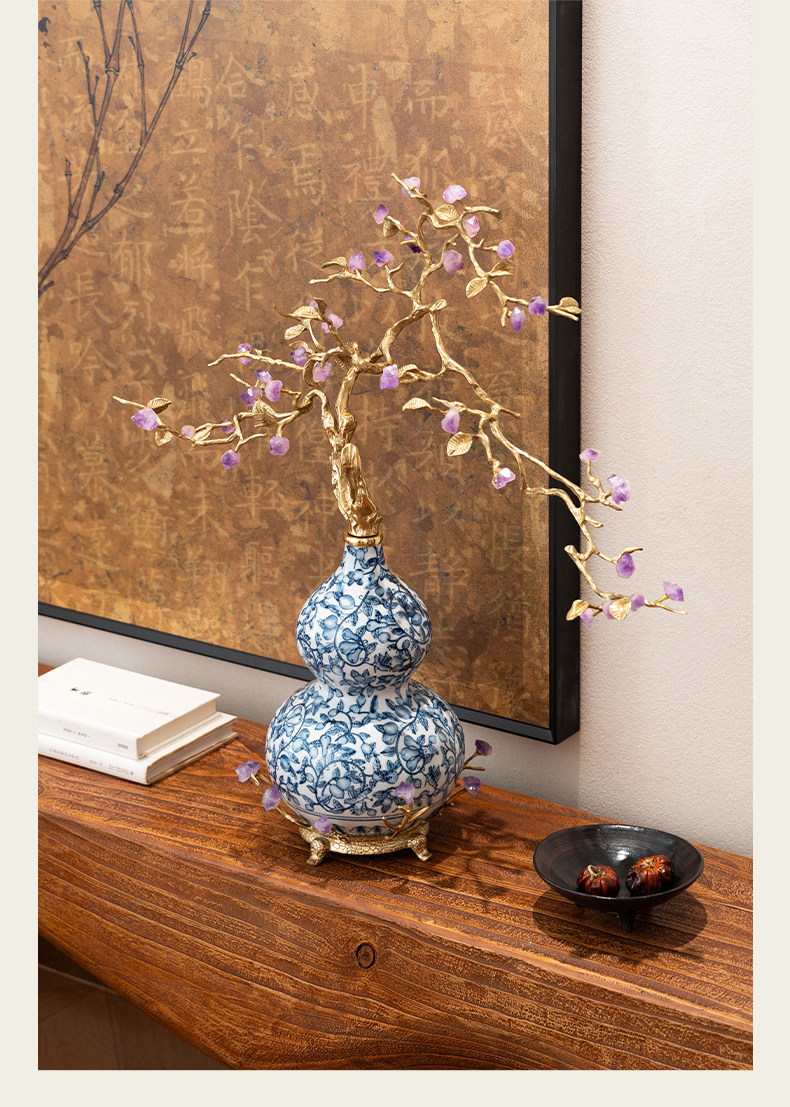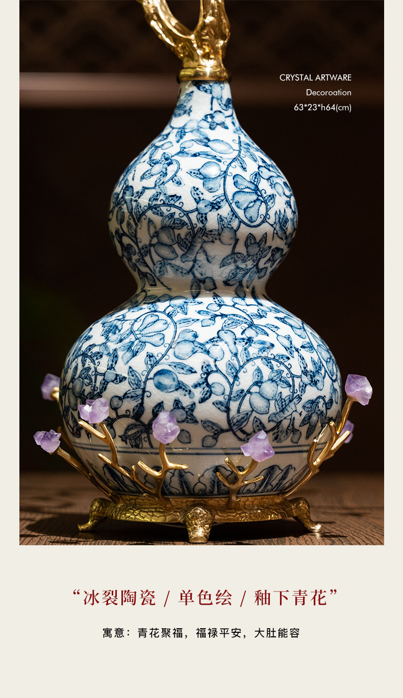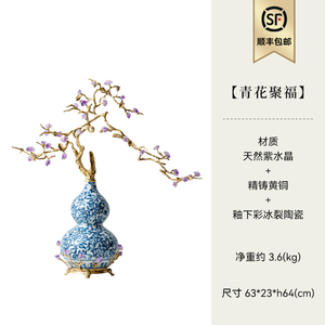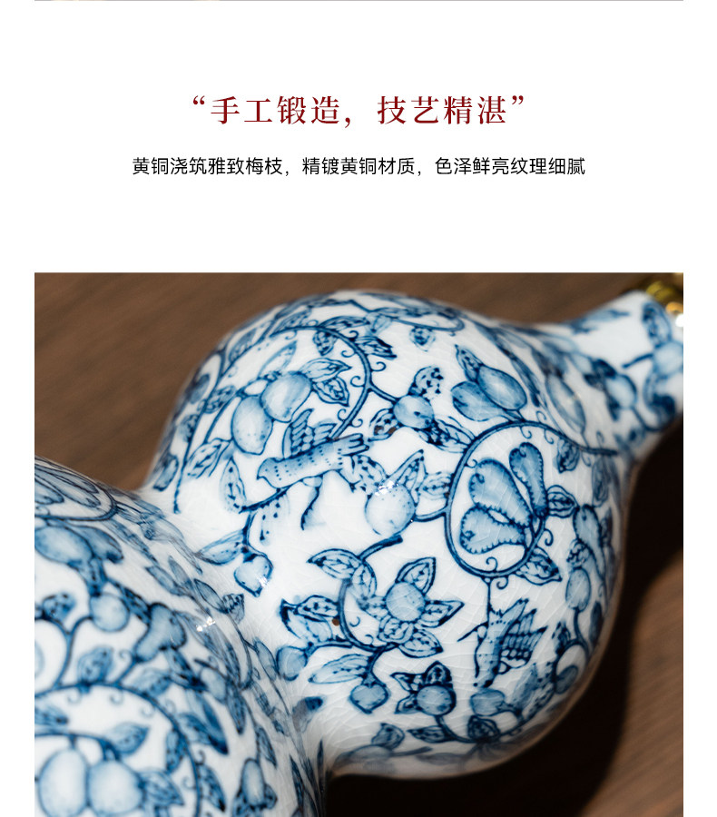商品名称:中古风黄铜青花瓷葫芦摆件客厅玄关新中式装饰品乔迁新居开业礼品