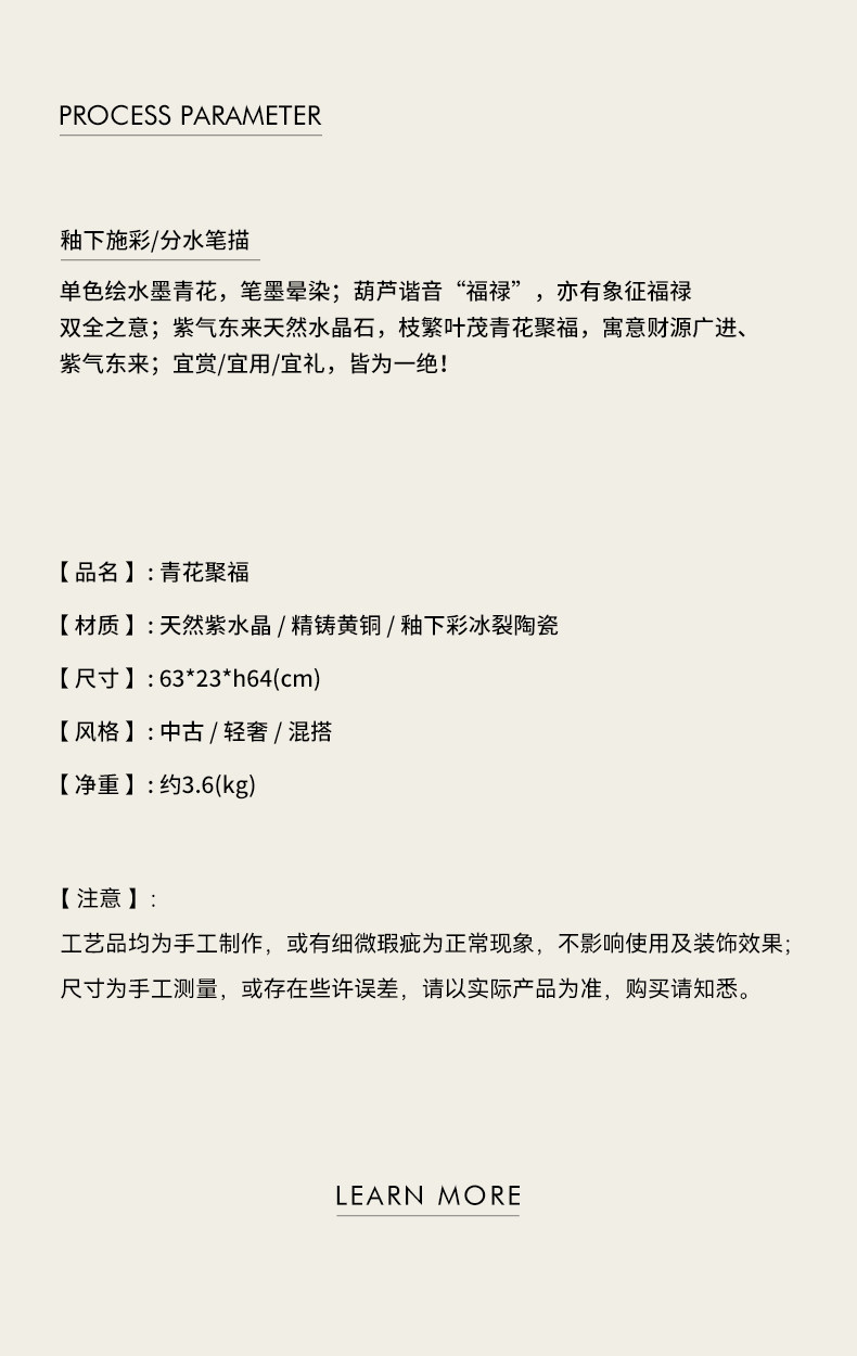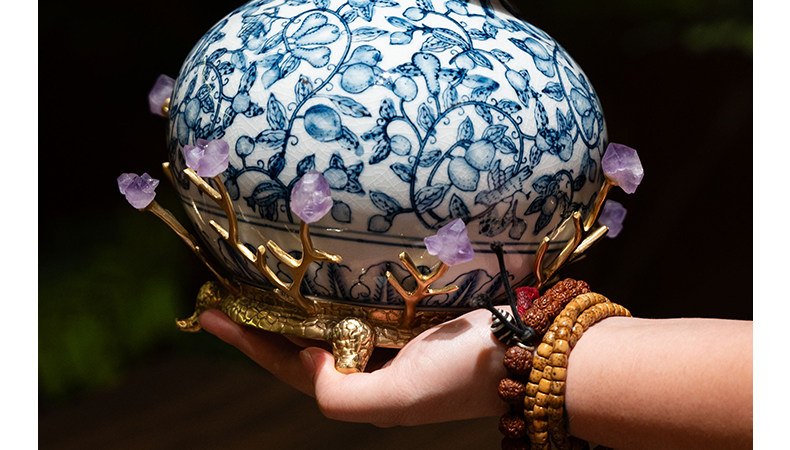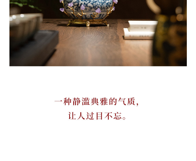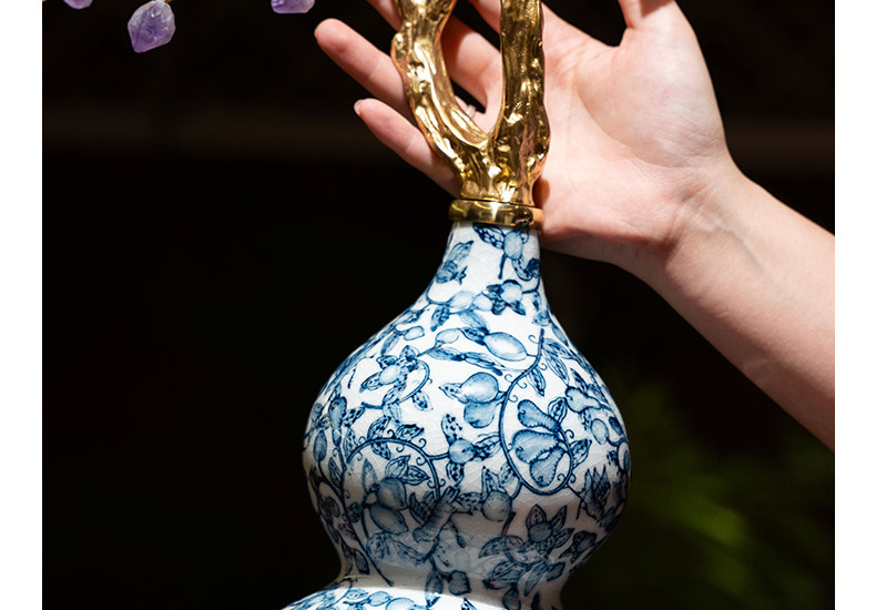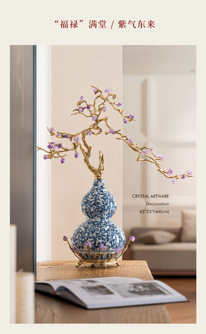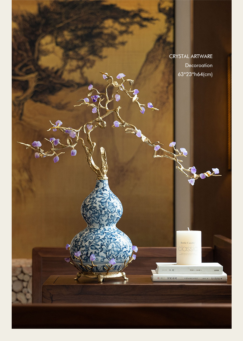商品名称:中古风黄铜青花瓷葫芦摆件客厅玄关新中式装饰品乔迁新居开业礼品