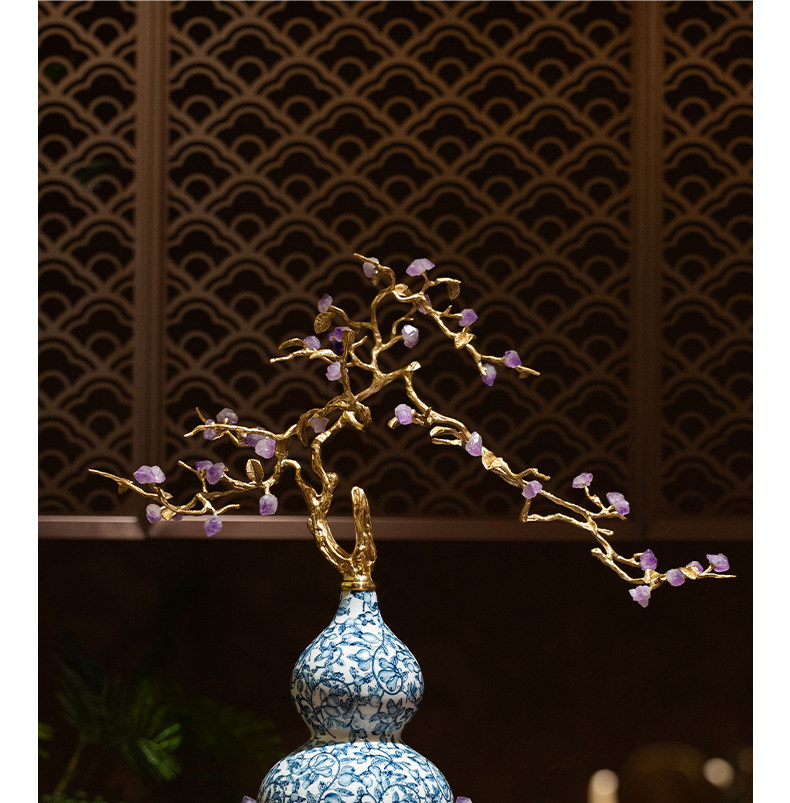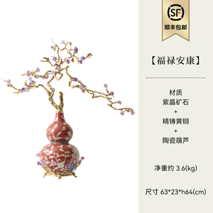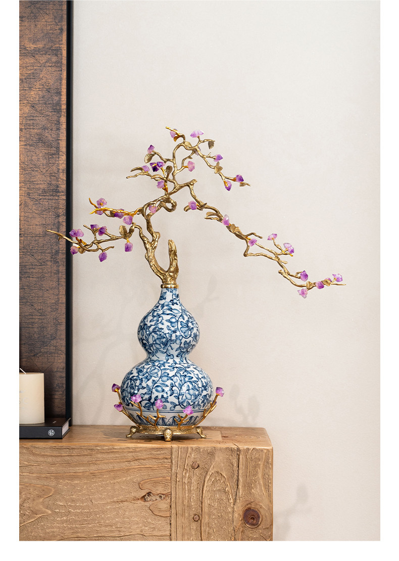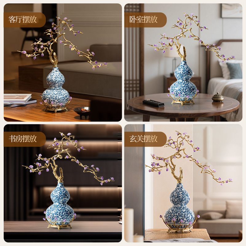 中古风黄铜青花瓷葫芦摆件客厅玄关新中式装饰品乔迁新居开业礼品