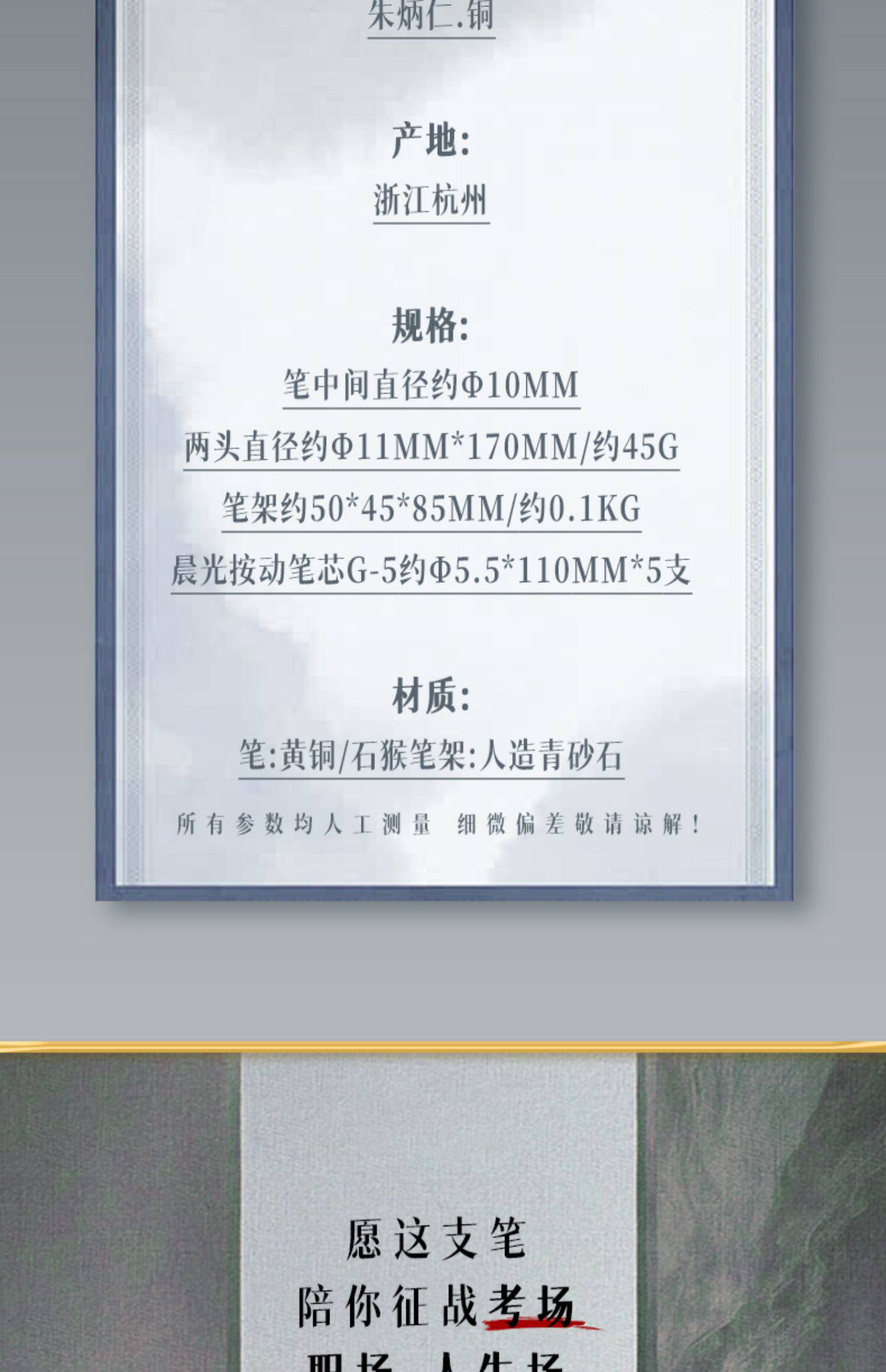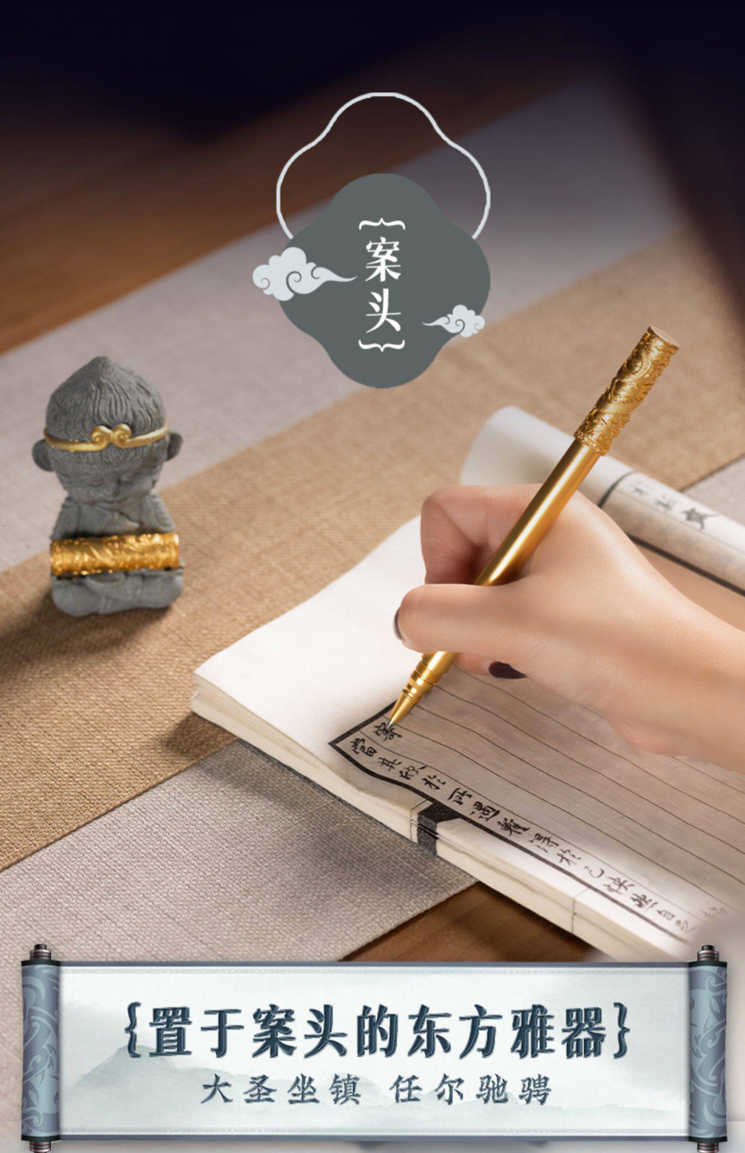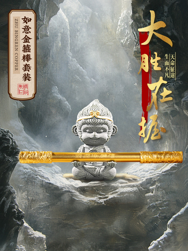 商品名称:朱炳仁铜如意金箍笔套装铜笔齐天大胜笔架摆件悟空棒铜笔礼物