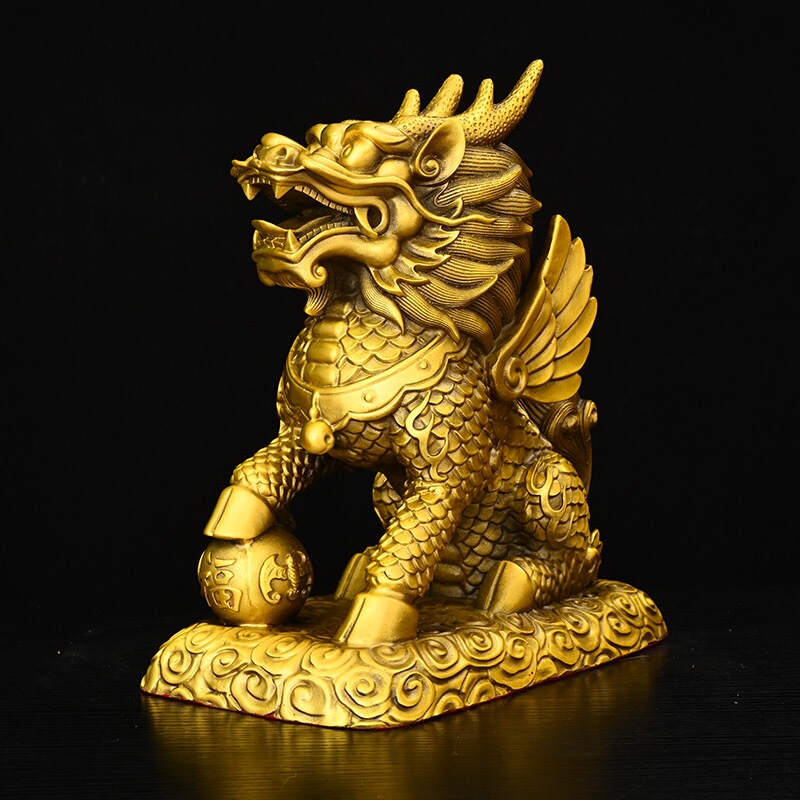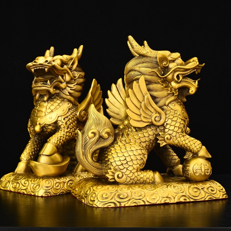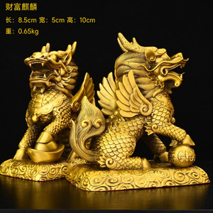 商品名称:铜麒麟摆件公母一对纯铜镇宅招财麒麟八卦办公室客厅乔迁装饰品