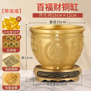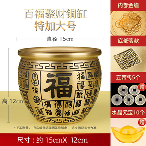 百福招财缸特大号口径15厘米【送铜底座】【送5个铜钱】