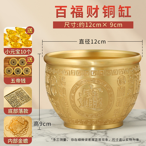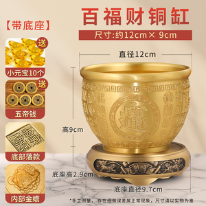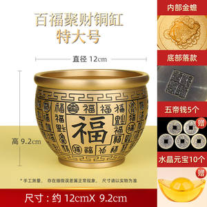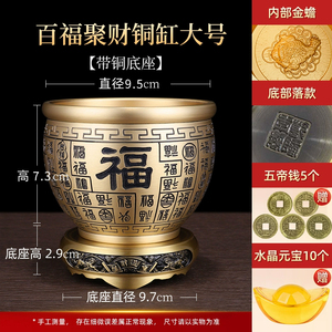 百福招财缸特大号口径12厘米【送铜底座】【送5个铜钱】