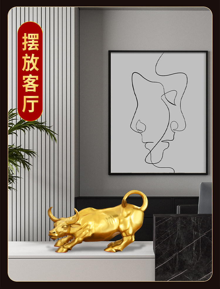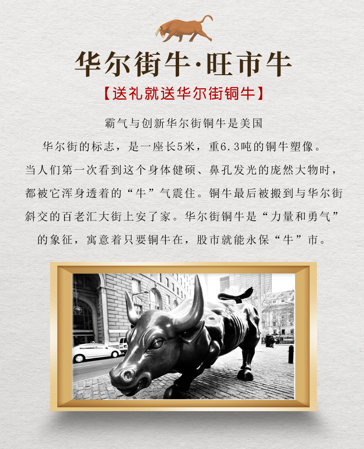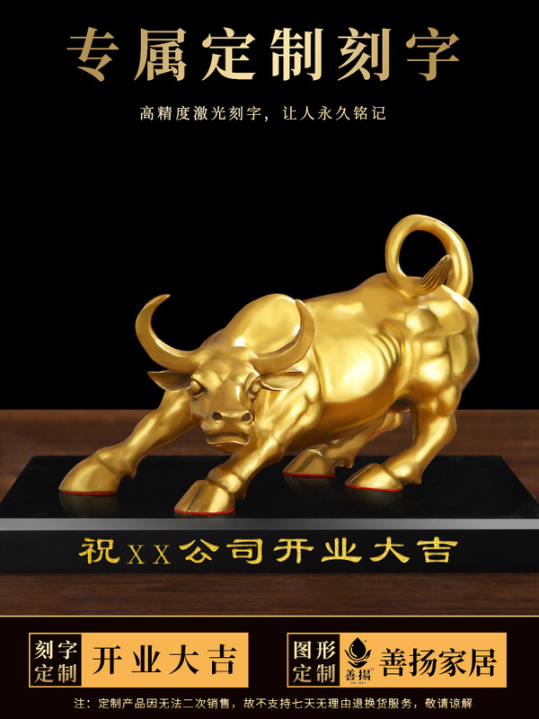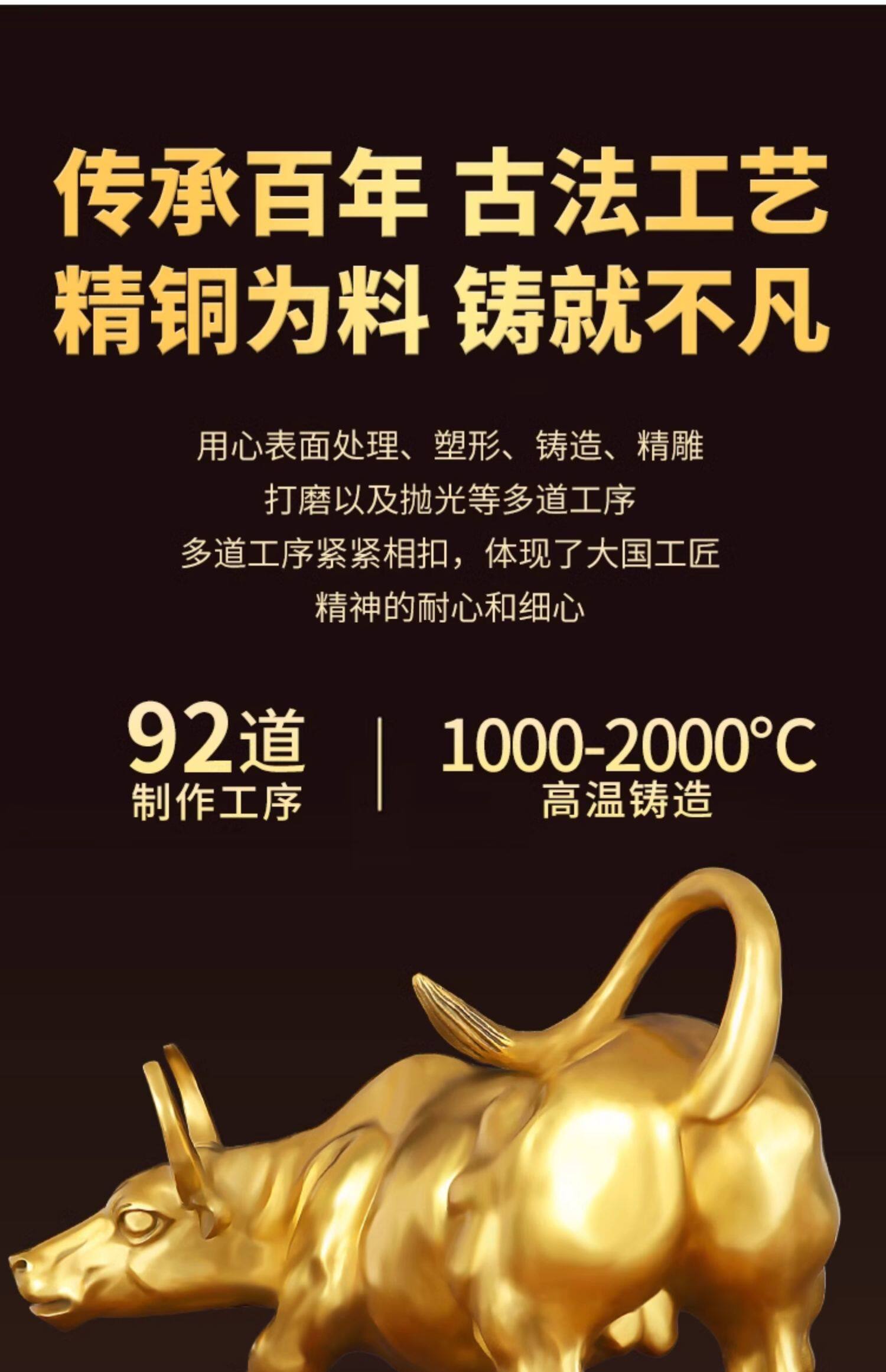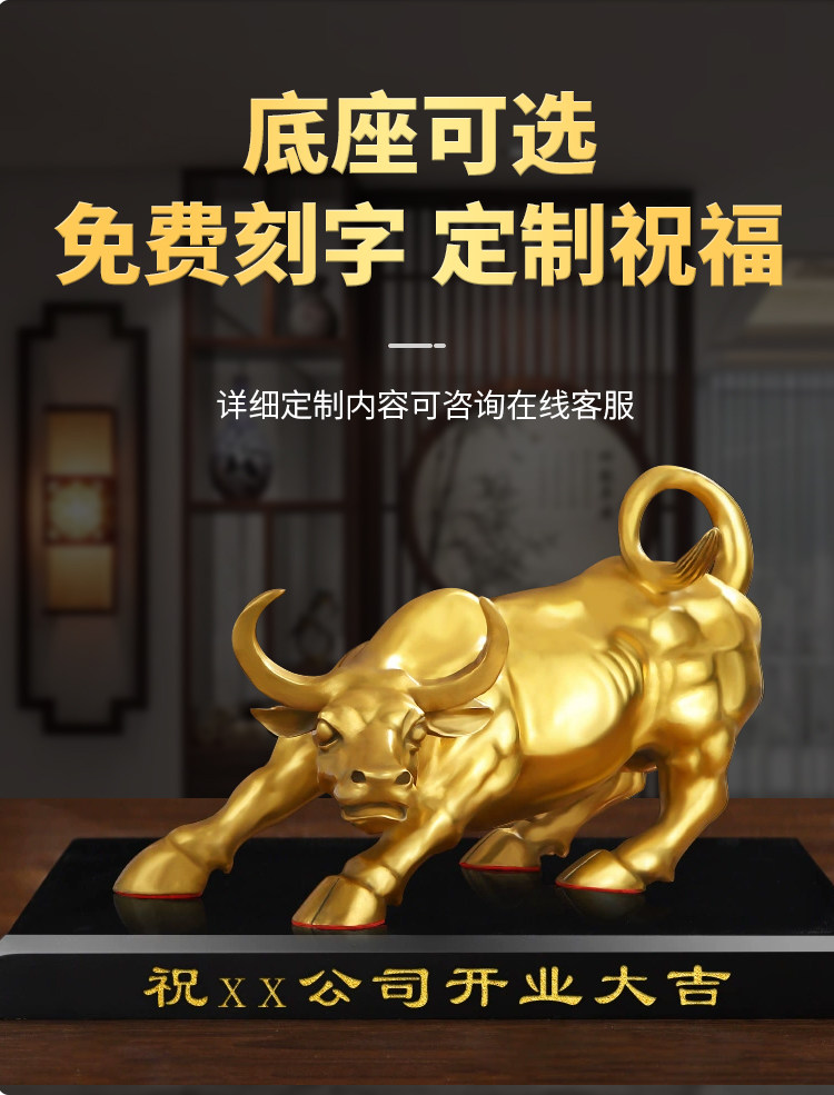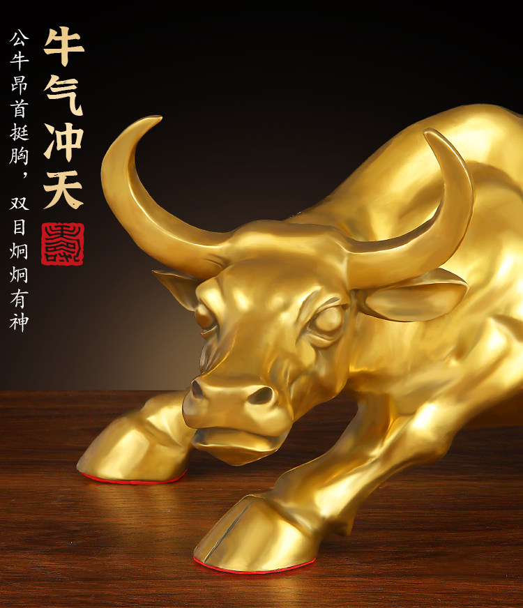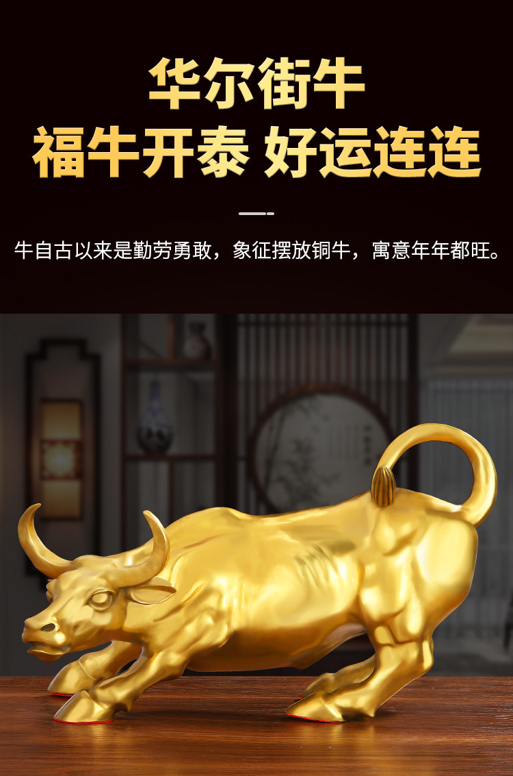 商品名称:铜牛摆件纯黄铜生肖牛气冲天铜华尔街旺市牛转乾坤客厅办公室摆设