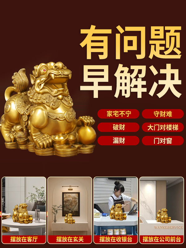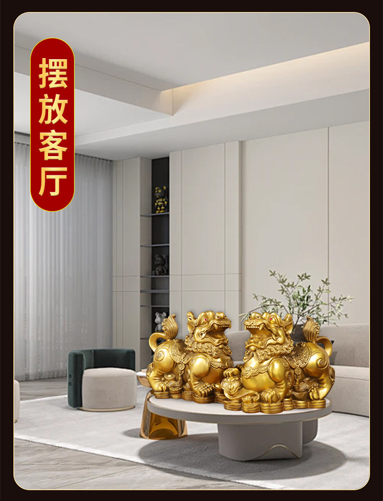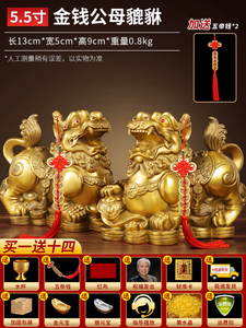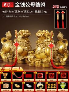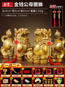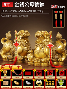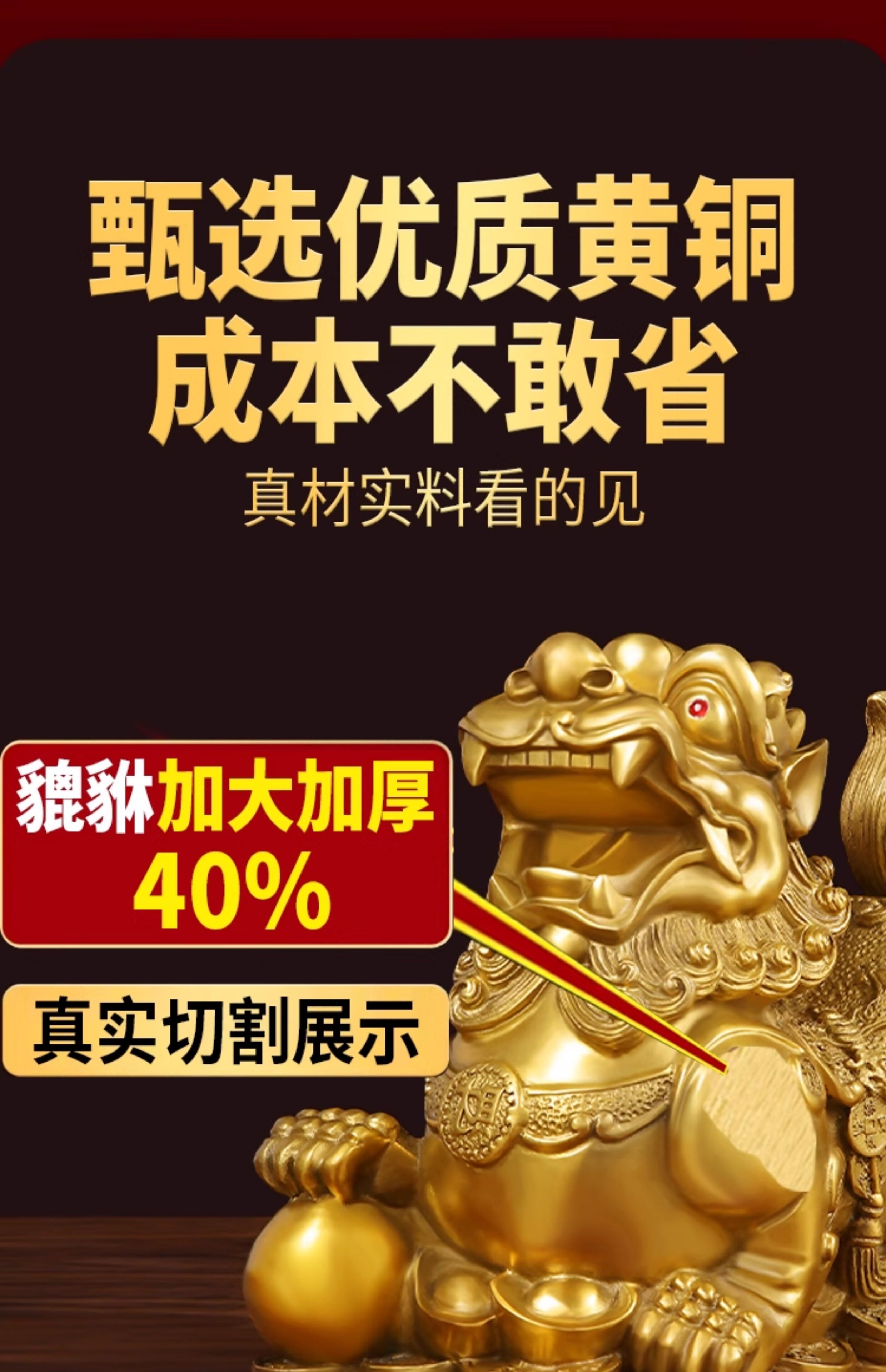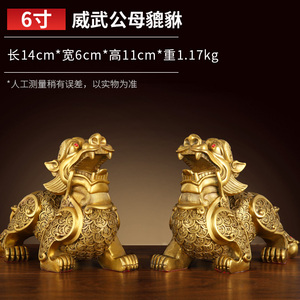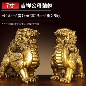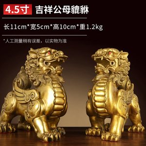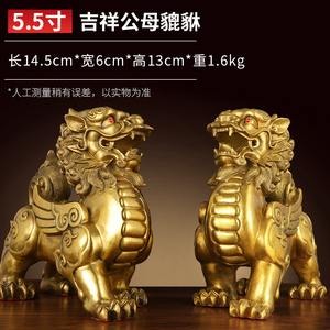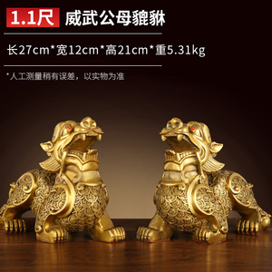 商品名称:铜貔貅招财摆件一对公母纯黄铜旺财全黄铜皮丘貔犰客厅店铺办公室