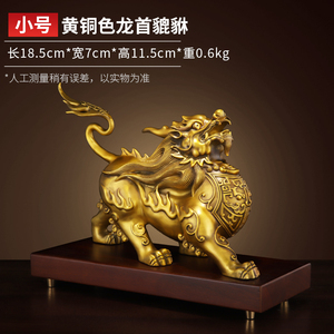 加大号 鎏金黄铜龙头貔貅/单只价 送胡桃木底座