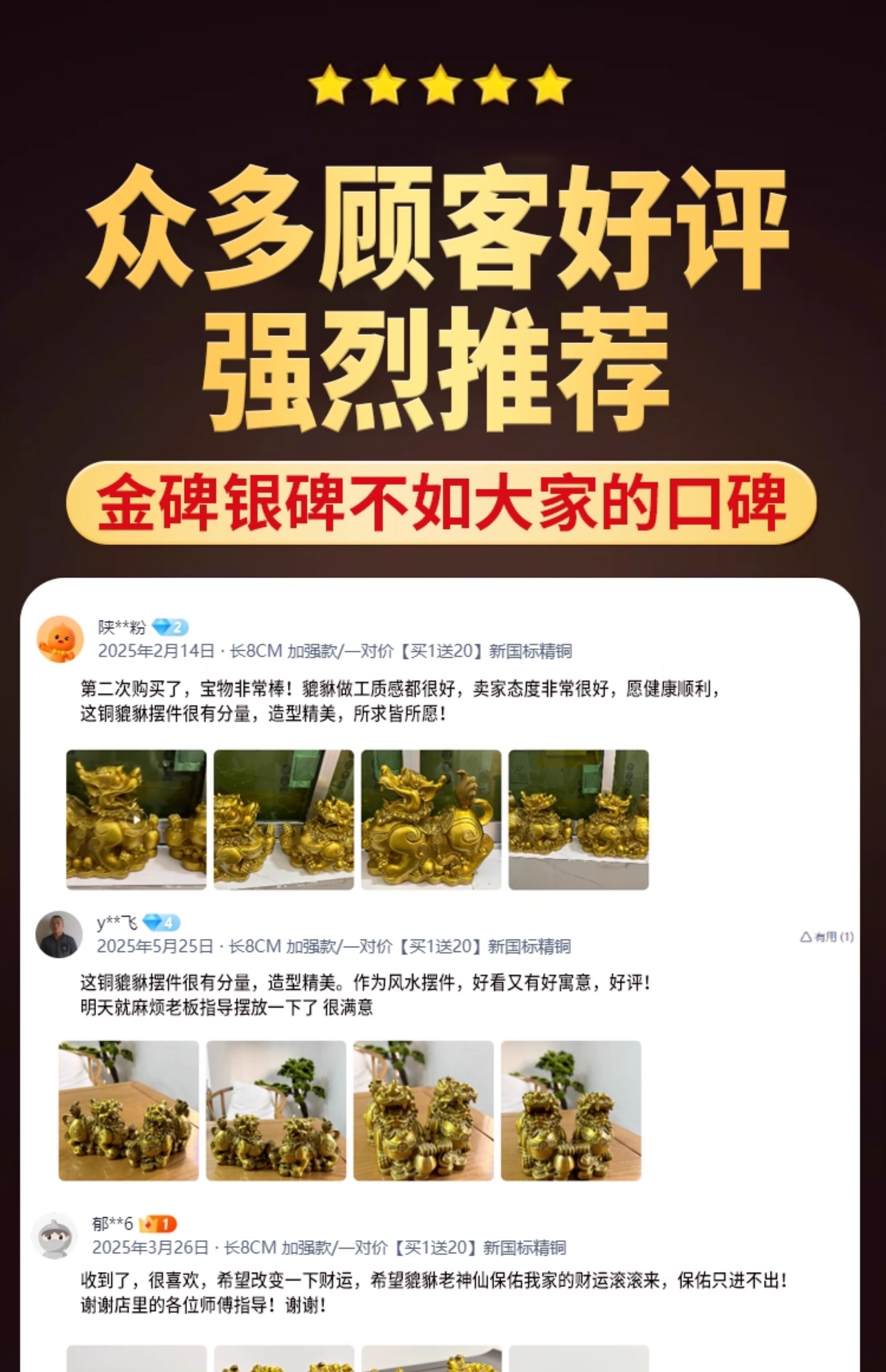 ✅【超90%的人选择】【富贵貔貅】中号一对-买1送20新国标精铜