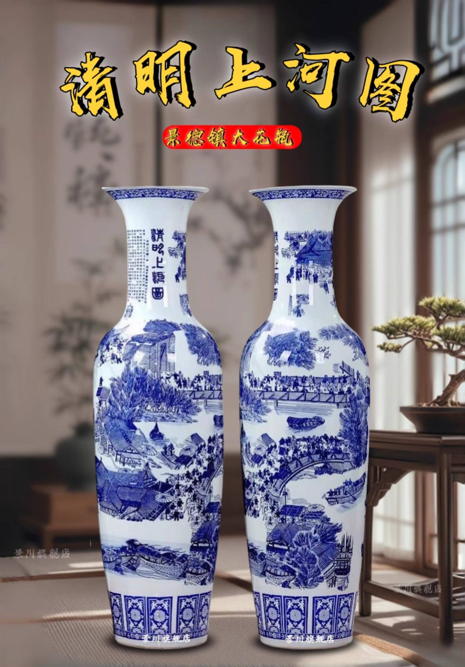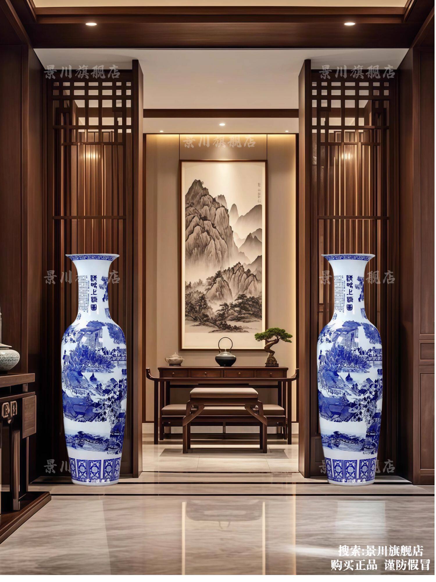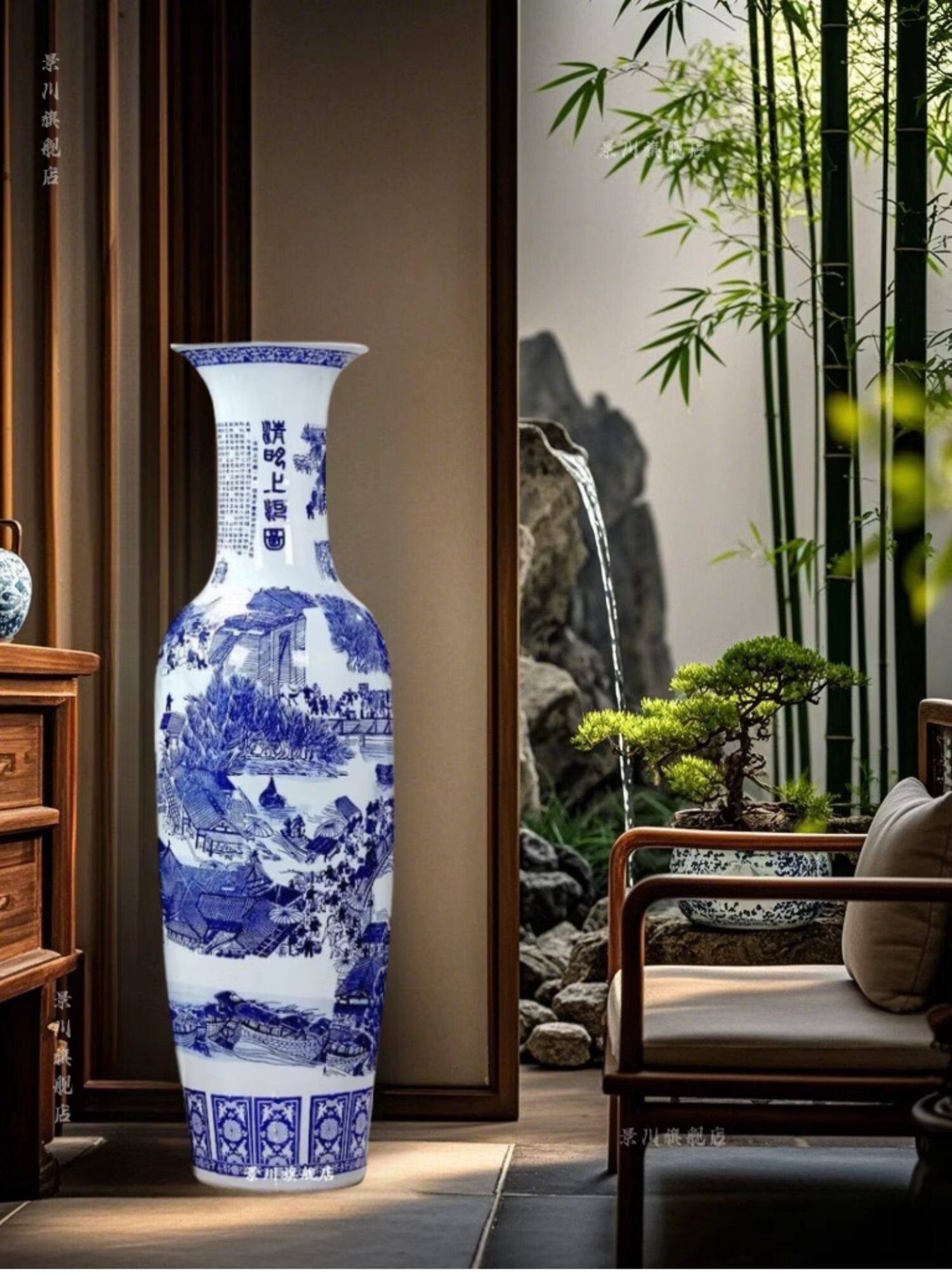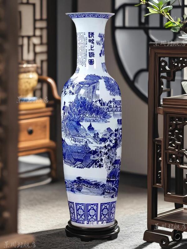 景德镇仿古清明上河图瓷瓶大号客厅落地大花瓶陶瓷花器装饰品摆件