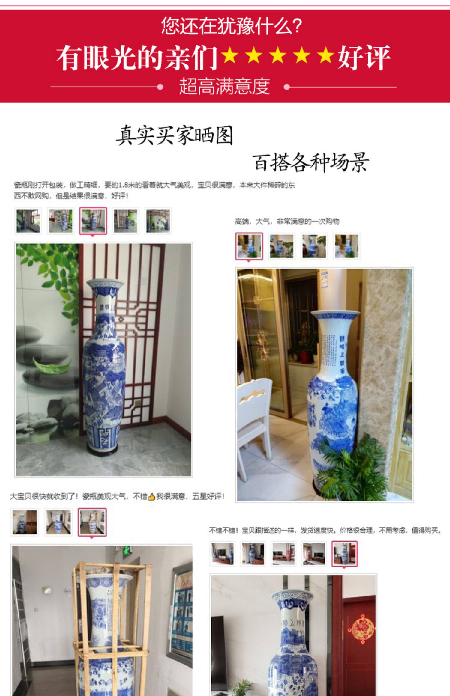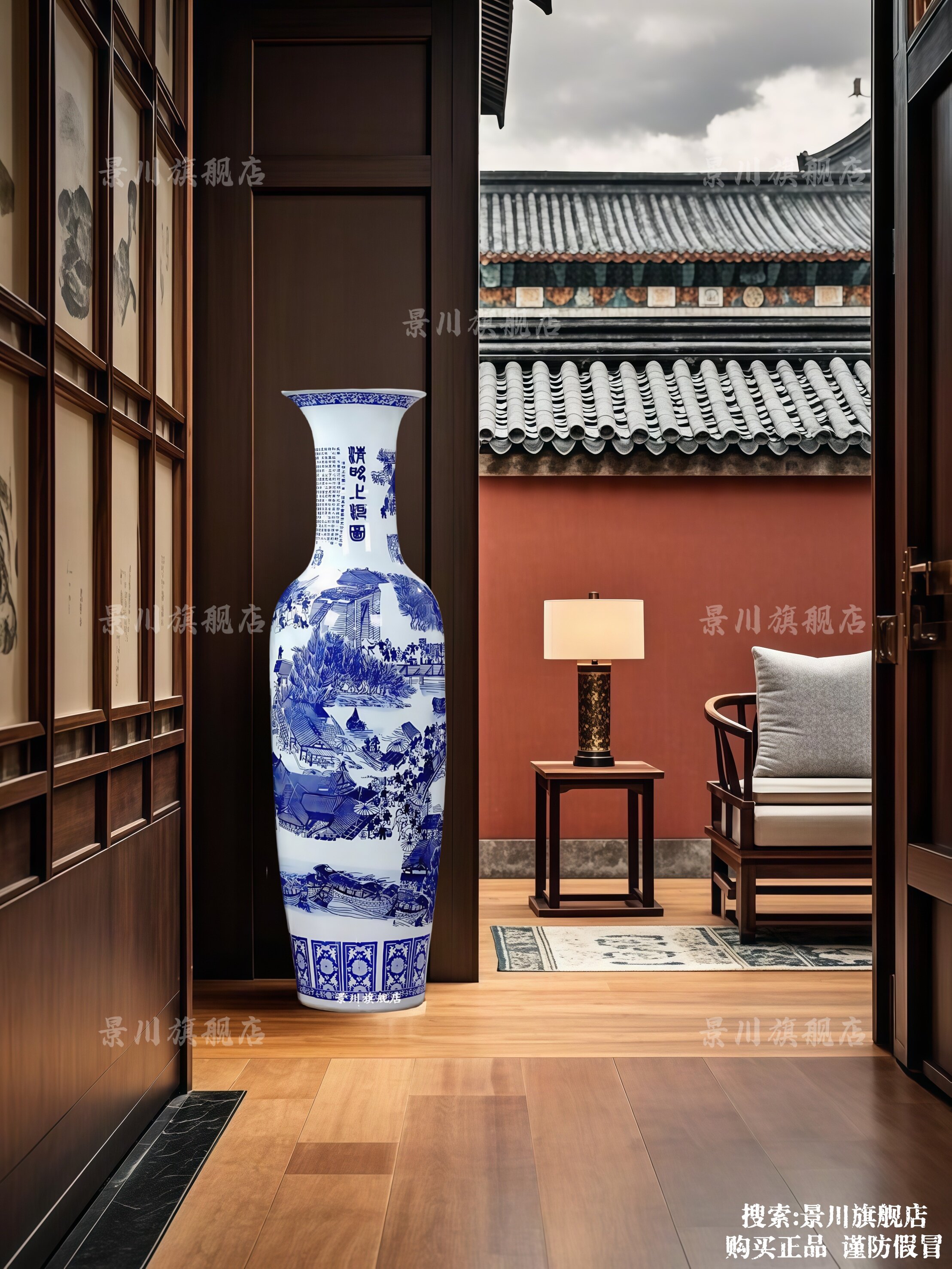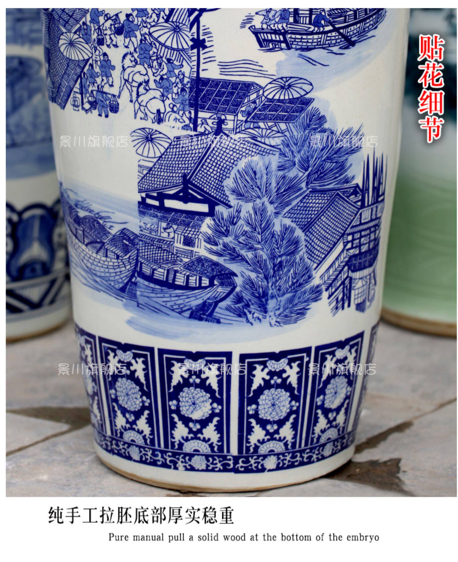 商品名称:景德镇仿古清明上河图瓷瓶大号客厅落地大花瓶陶瓷花器装饰品摆件
