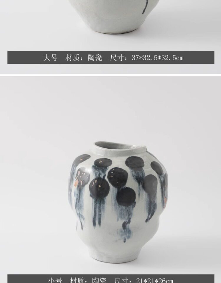 商品名称:新中式手绘陶瓷花瓶复古怀旧陶罐装饰摆件样板房客厅桌面插干花器