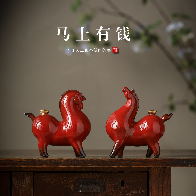 商品名称:创意招财唐马摆件陶瓷动物马中式客厅书房办公室桌面装饰品工艺品