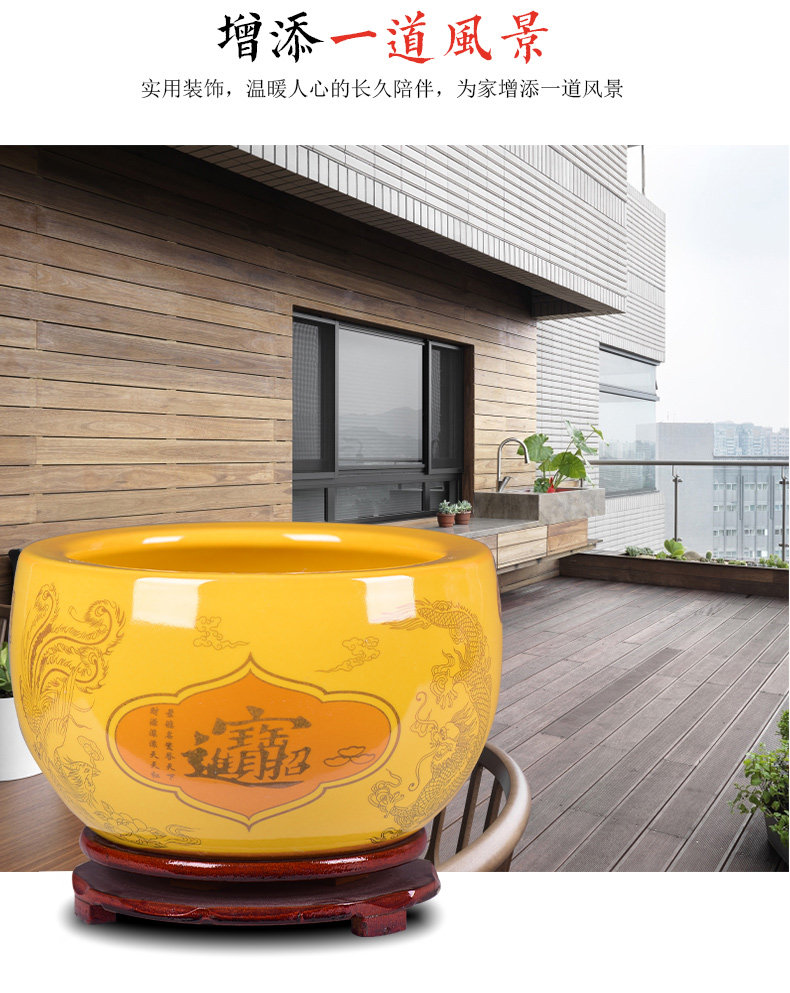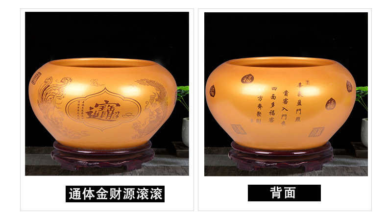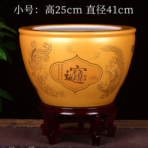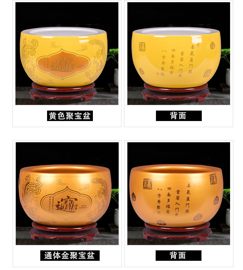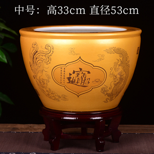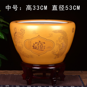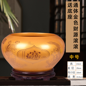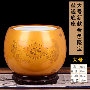 金色聚宝缸平口小号直径41cm送底座