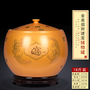 18斤装【内白外金色】招财进宝储物罐送底座