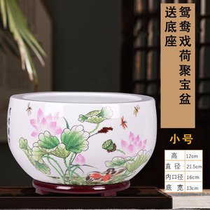【小号】鸳鸯戏荷聚宝盆送底座