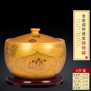 3斤装【内白外金色】招财进宝储物罐送底座