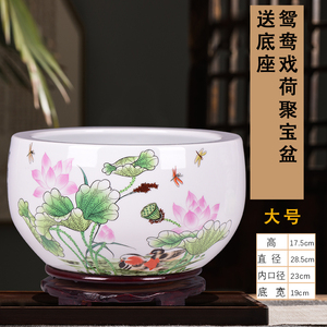 【大号】鸳鸯戏荷聚宝盆送底座