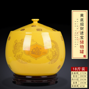 18斤装【内白外黄色】招财进宝储物罐送底座
