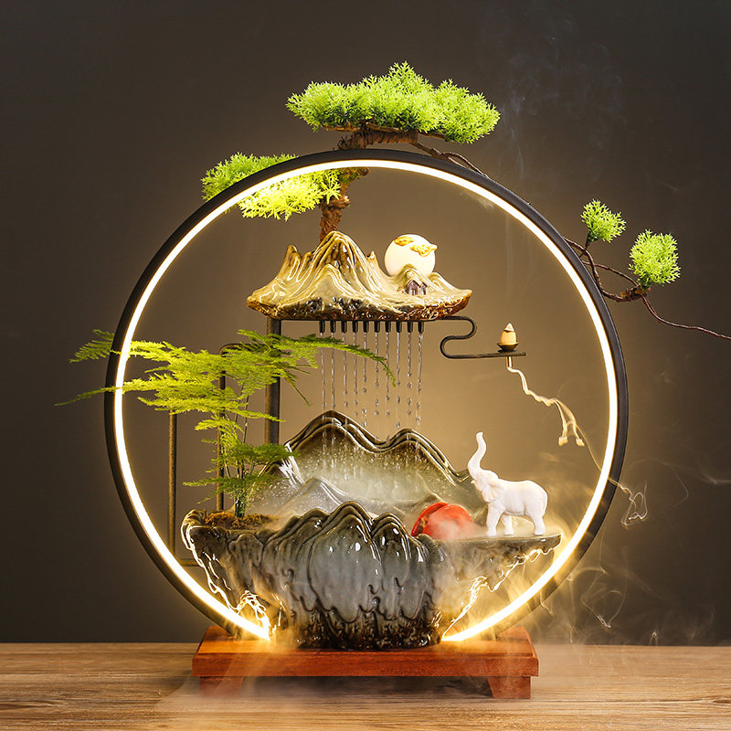 中式创意流水生财摆件循环水客厅办公室桌面装饰新家乔迁开业礼品