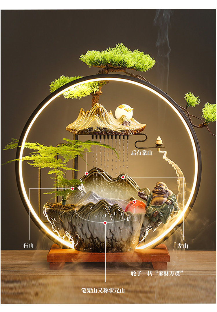 商品名称:中式创意流水生财摆件循环水客厅办公室桌面装饰新家乔迁开业礼品