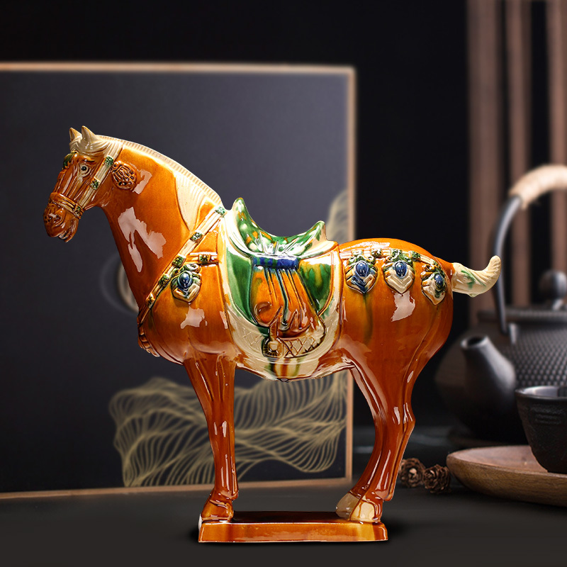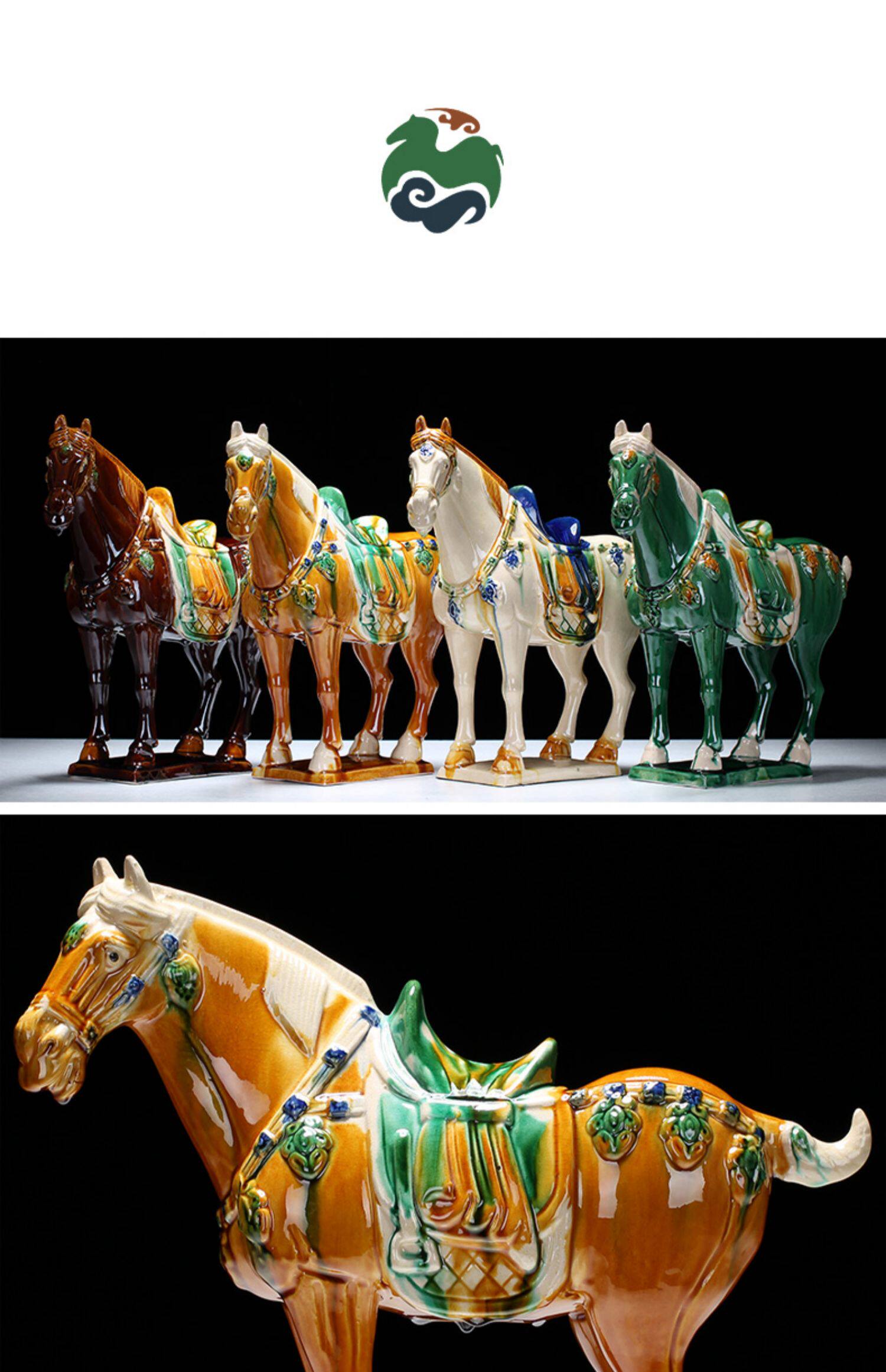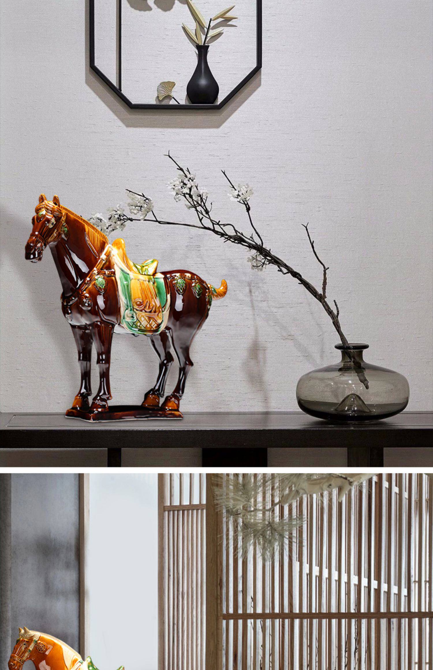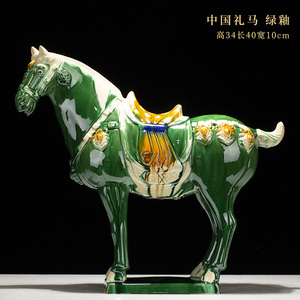 博艺萱唐三彩马摆件中式家居装饰陶瓷马客厅电视柜玄关工艺品招财