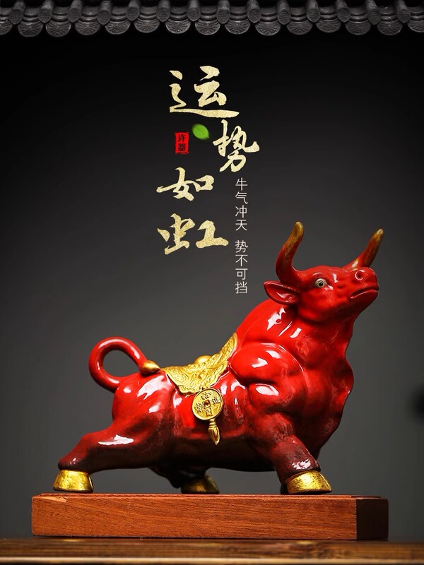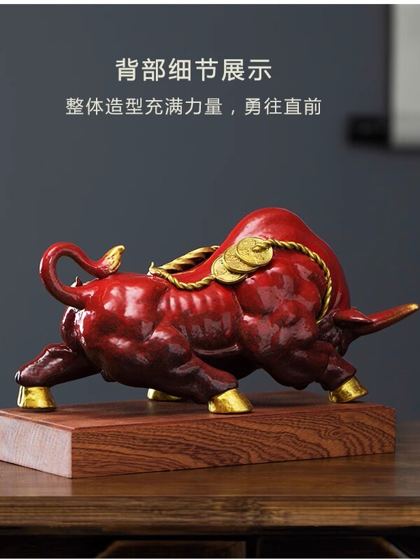 商品名称:陶瓷招财摆件牛气冲天家居室内扭转乾坤牛摆件办公室店铺开业送礼