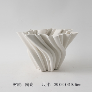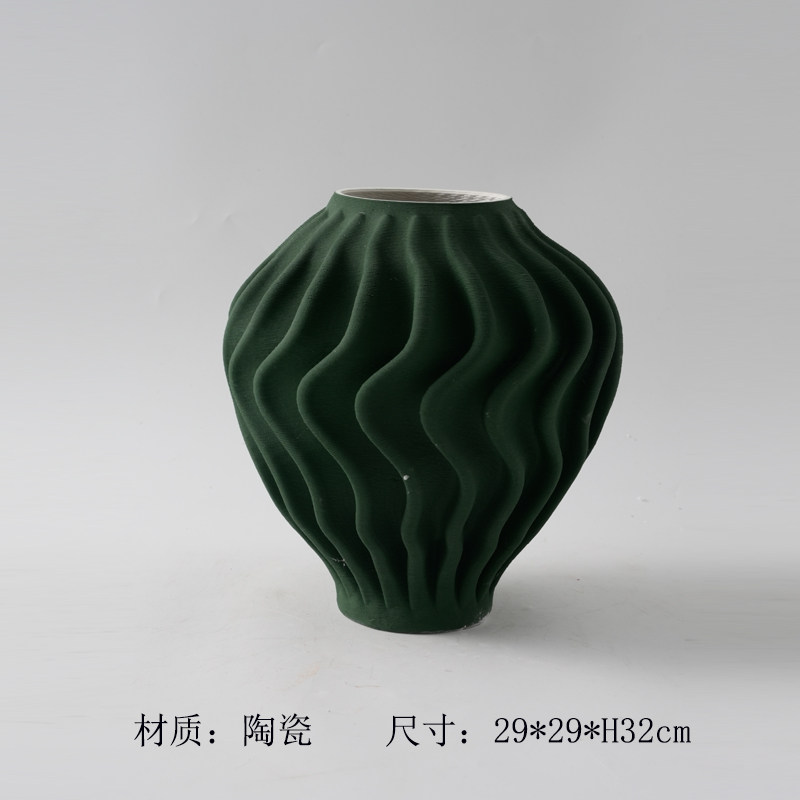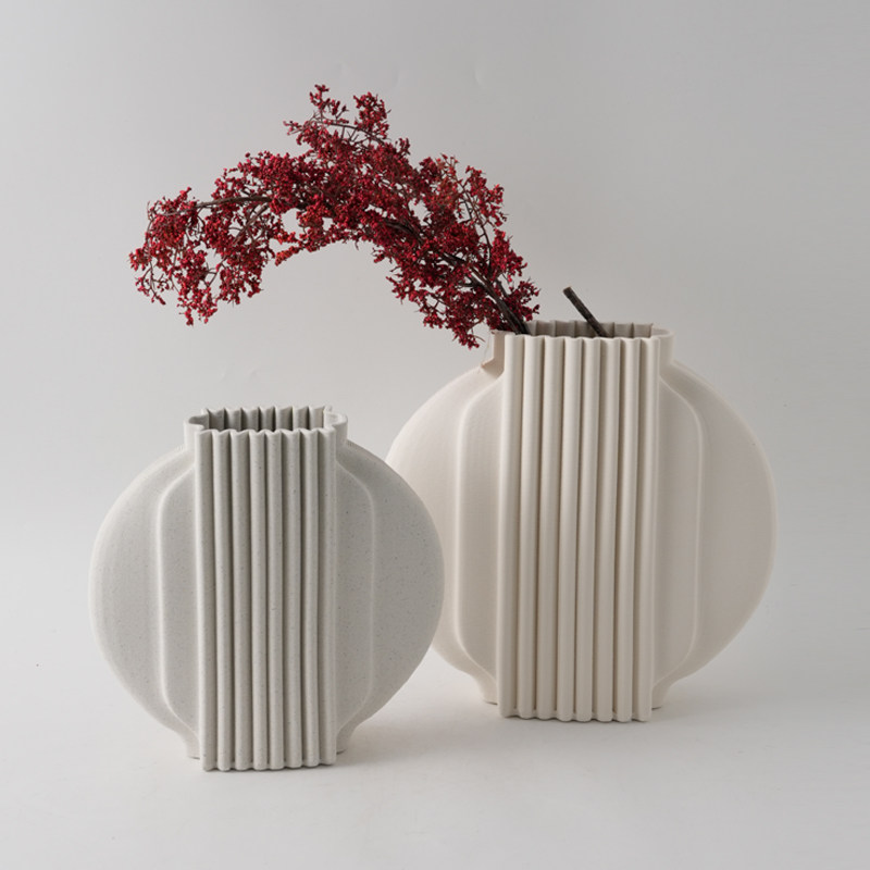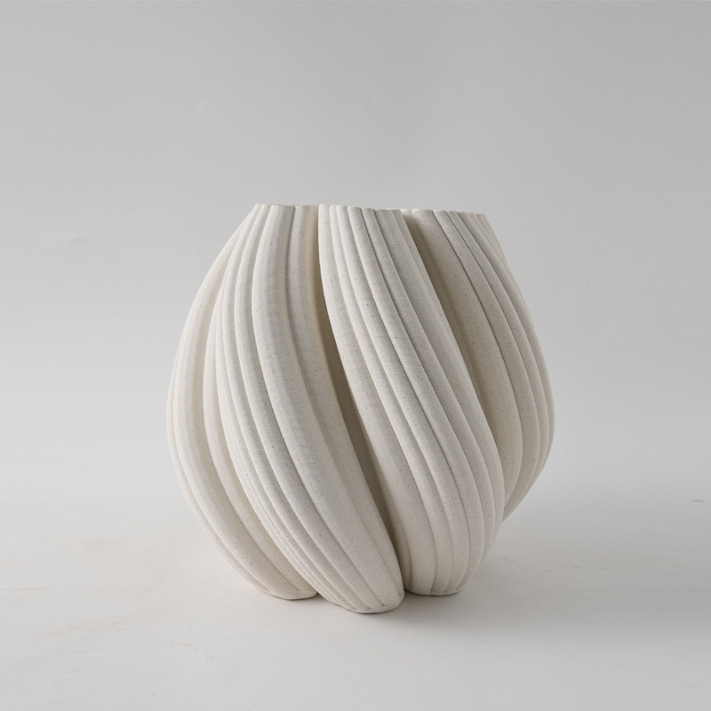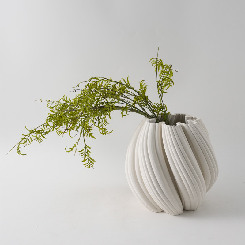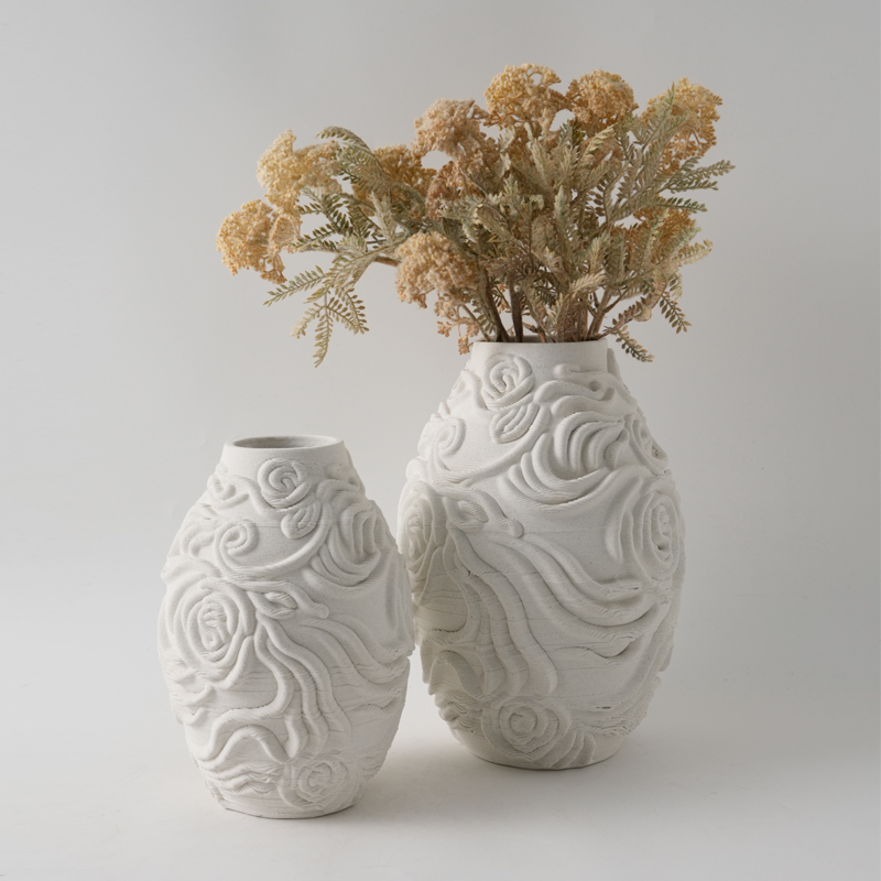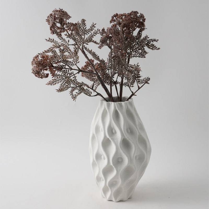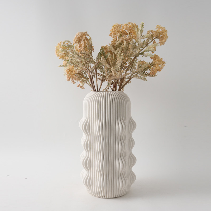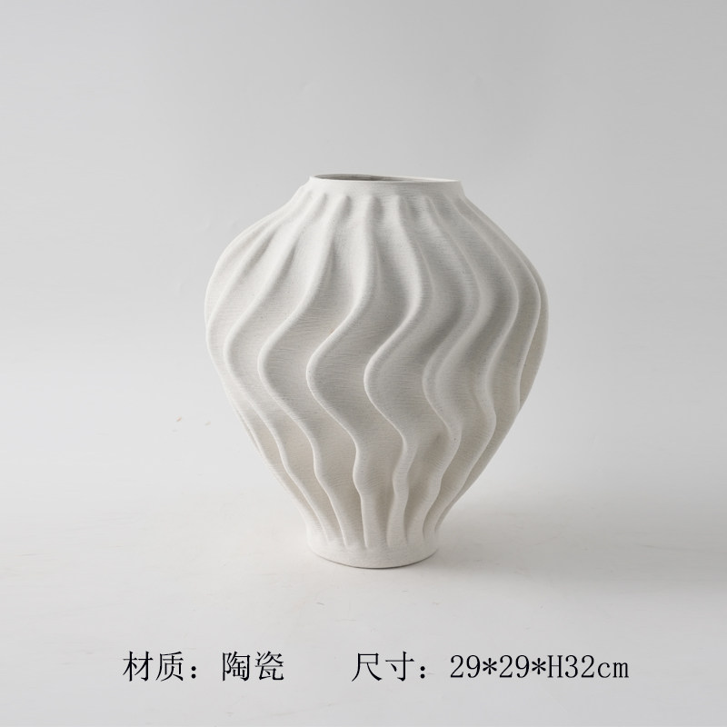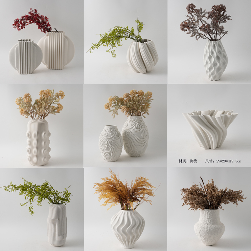 现代简约3D打印白色麻点陶瓷花瓶摆件样板间酒店客厅干花花器装饰