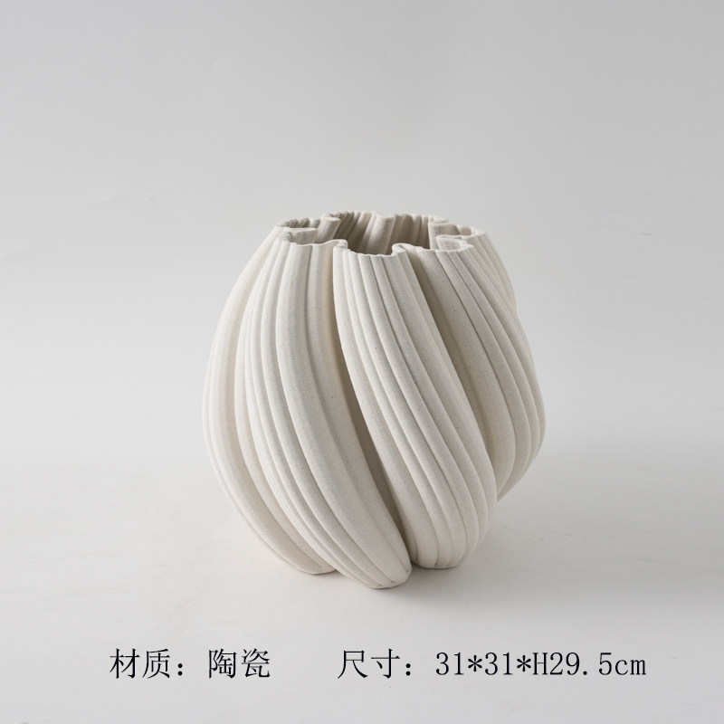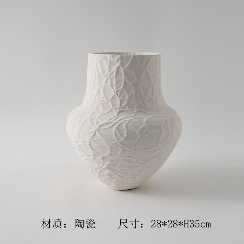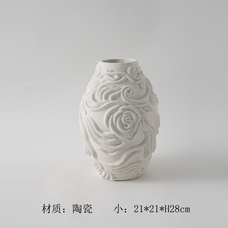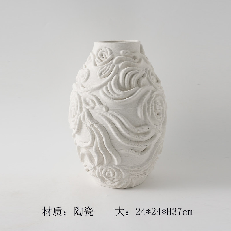 商品名称:现代简约3D打印白色麻点陶瓷花瓶摆件样板间酒店客厅干花花器装饰
