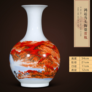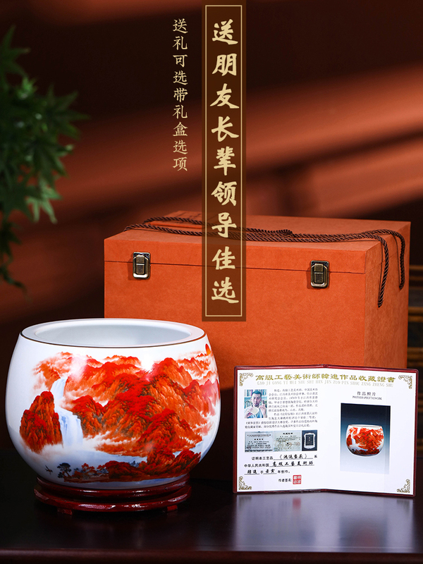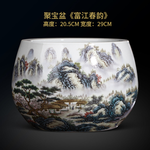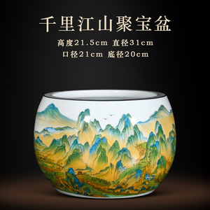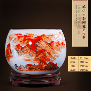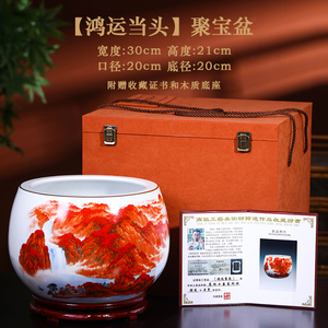 景德镇陶瓷器鸿运当头聚宝盆摆件中式家居饰品客厅玄关养鱼缸摆件
