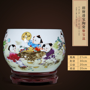 商品名称:景德镇陶瓷器鸿运当头聚宝盆摆件中式家居饰品客厅玄关养鱼缸摆件