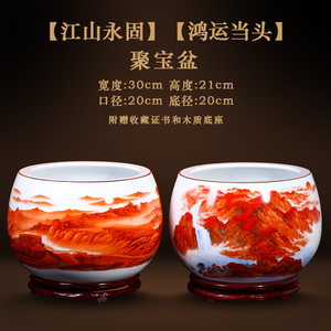 ✅【江山永固】聚宝盆/送底座+证书+五帝钱(加厚加重带内绘)