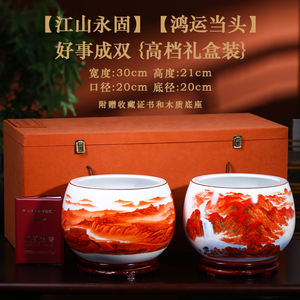 【双绝礼盒装】鸿运当头聚宝盆+江山永固聚宝盆+收藏证书/送底座