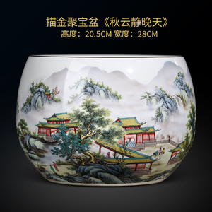 孙邵平老师升级版描金《秋云静晚天》聚宝盆/送底座+证书+五帝钱