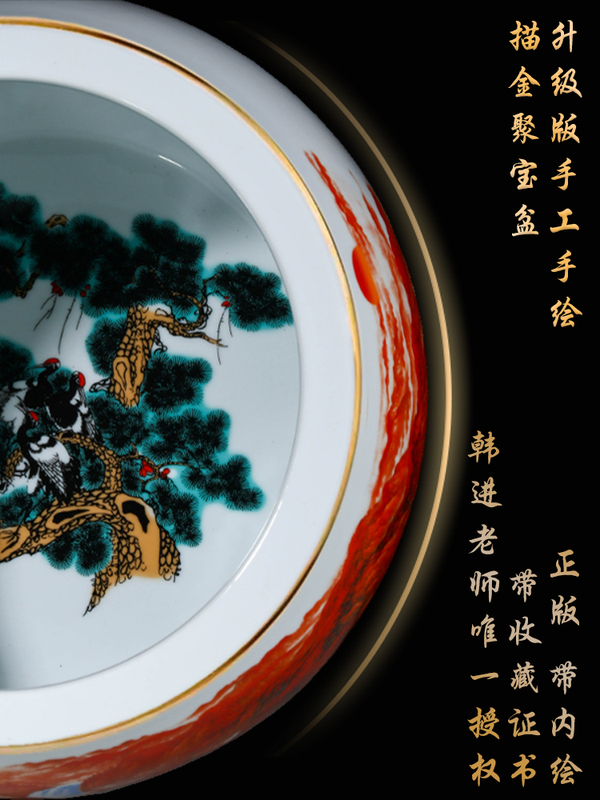 韩进老师升级版描金《招财进宝》聚宝盆/送底座+证书+五帝钱