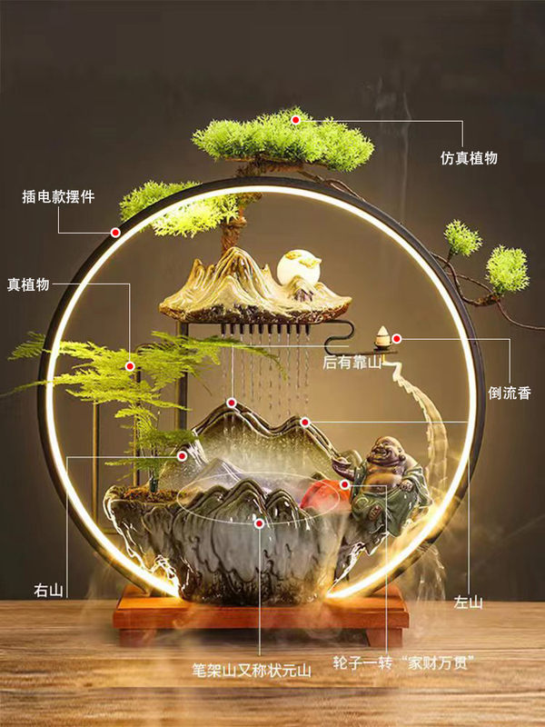商品名称:流水摆件家用倒流香中式喷泉客厅加湿器办公室乔迁新居开业礼装饰