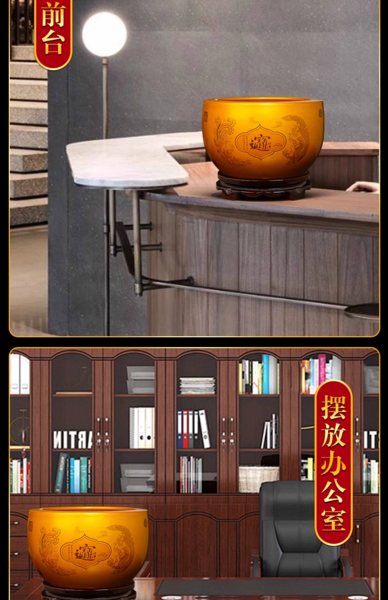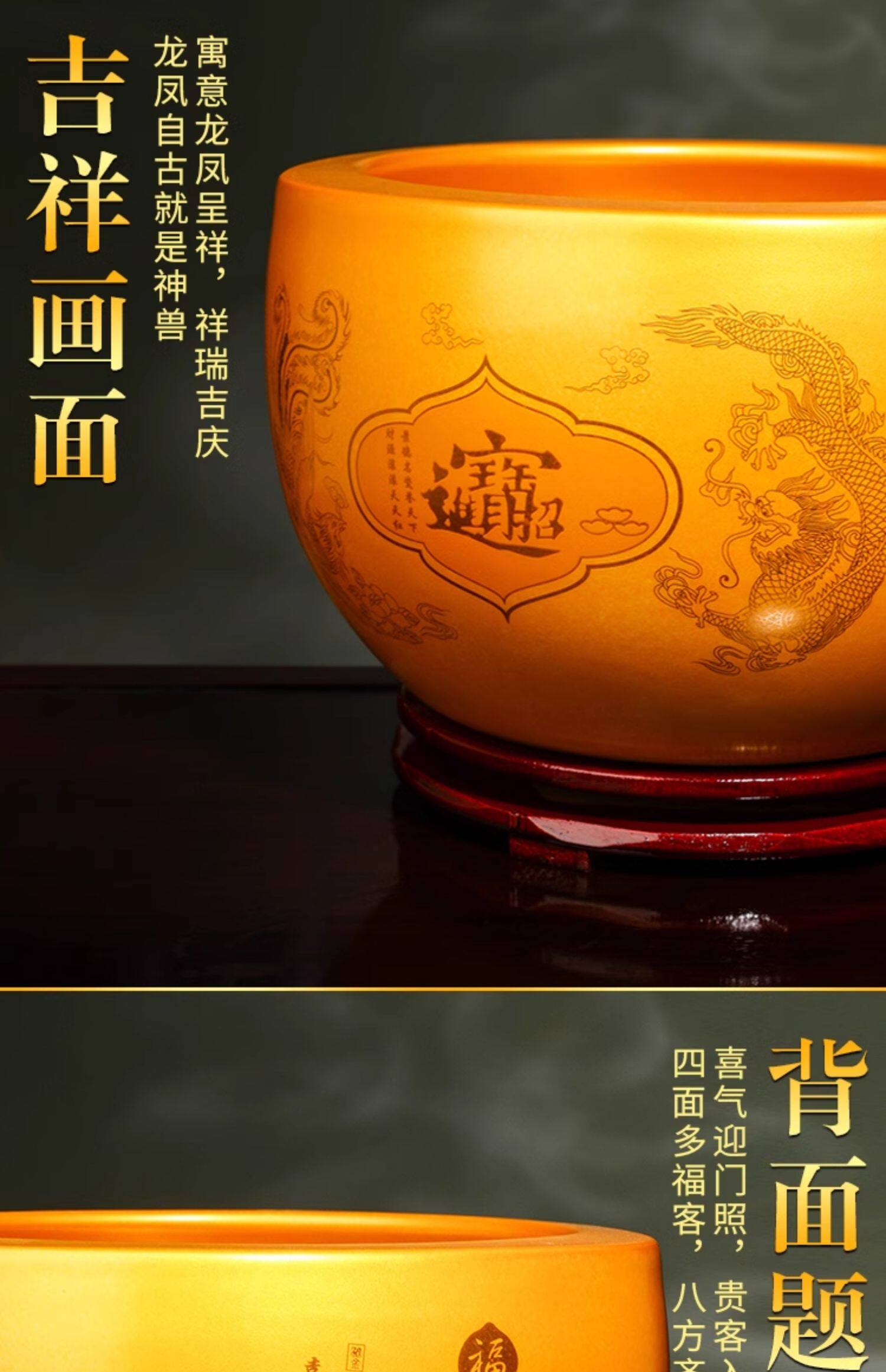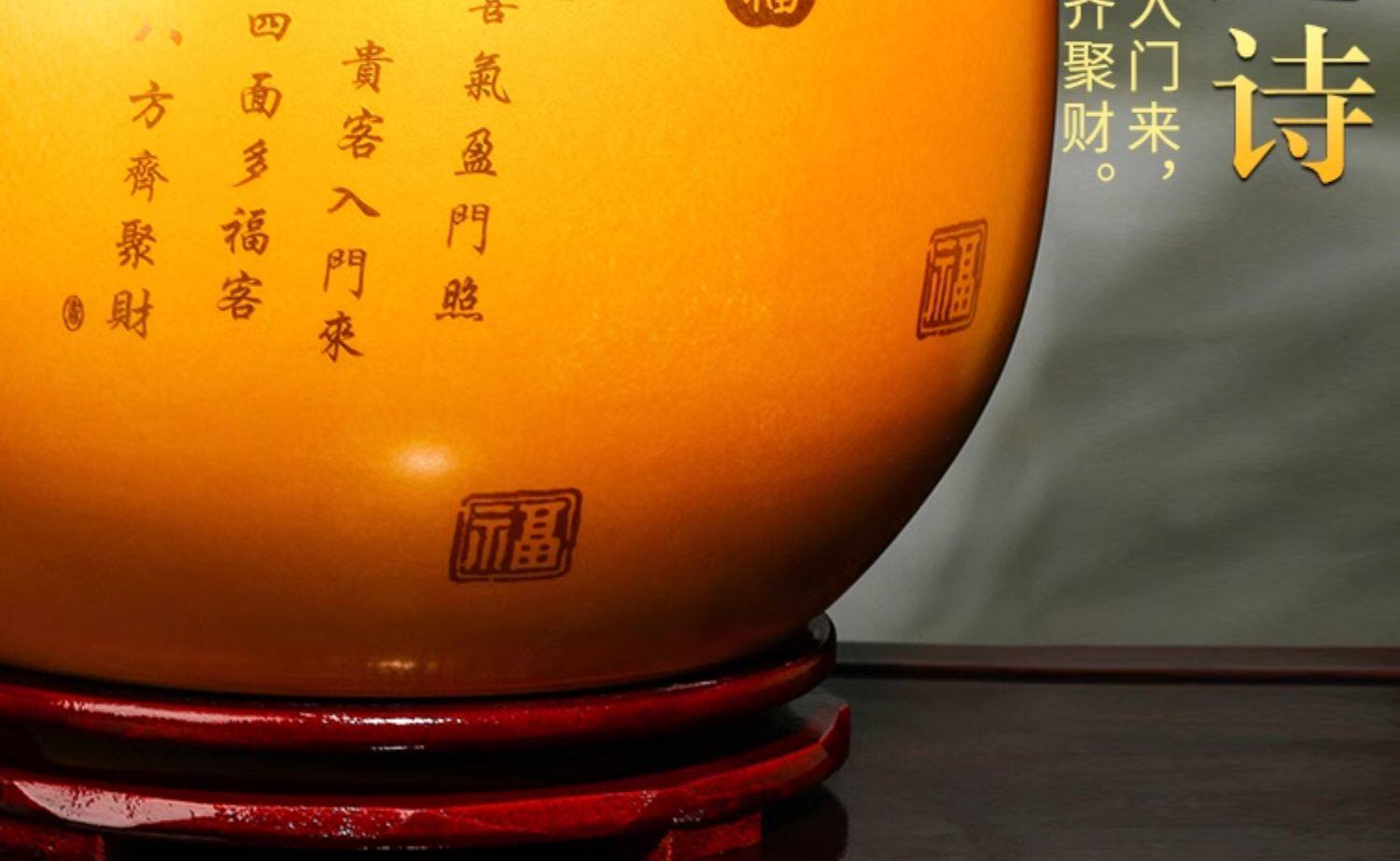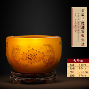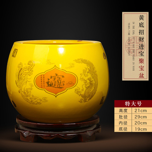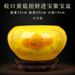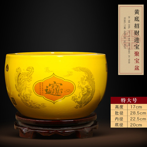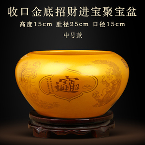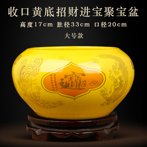 大号【内外黄色】收口招财纳福聚宝盆【送底座】