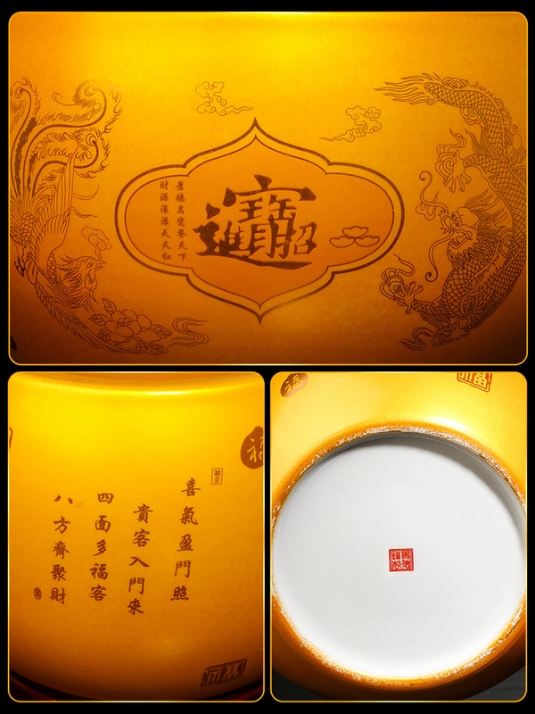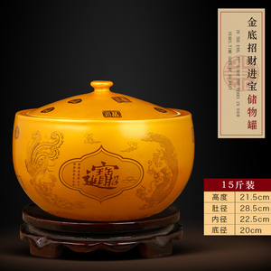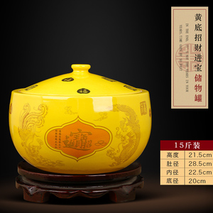 (15斤装)【内白外黄色】招财进宝储物罐【送底座】