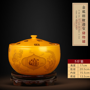 (5斤装)【内白外金色】招财进宝储物罐【送底座】