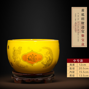 中号【内外黄色】收口招财纳福聚宝盆【送底座】