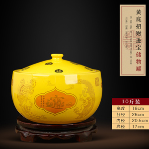 (10斤装)【内白外黄色】招财进宝储物罐【送底座】