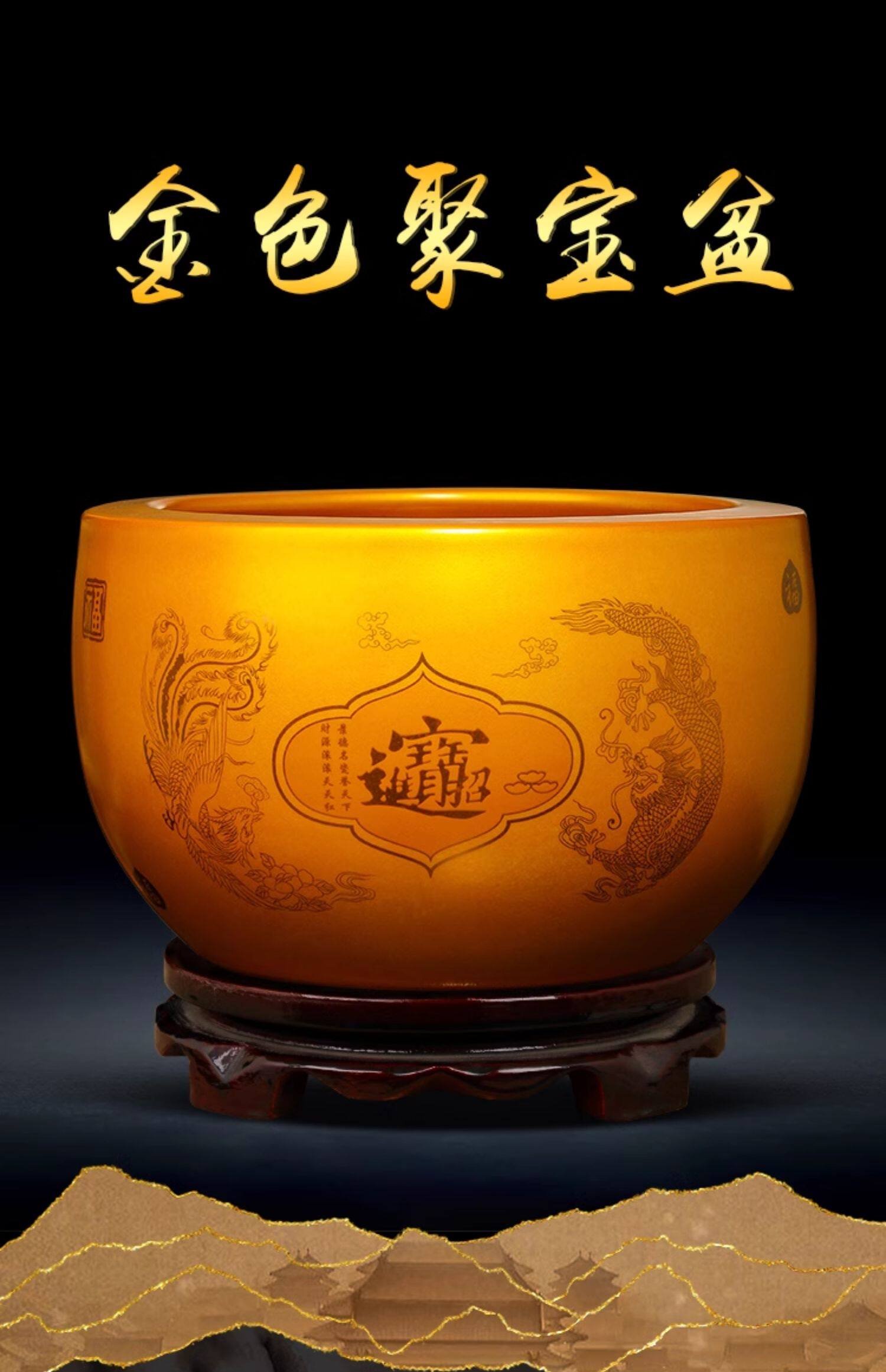 ✅中号【升级加厚内外金色】招财进宝聚宝盆【送底座】