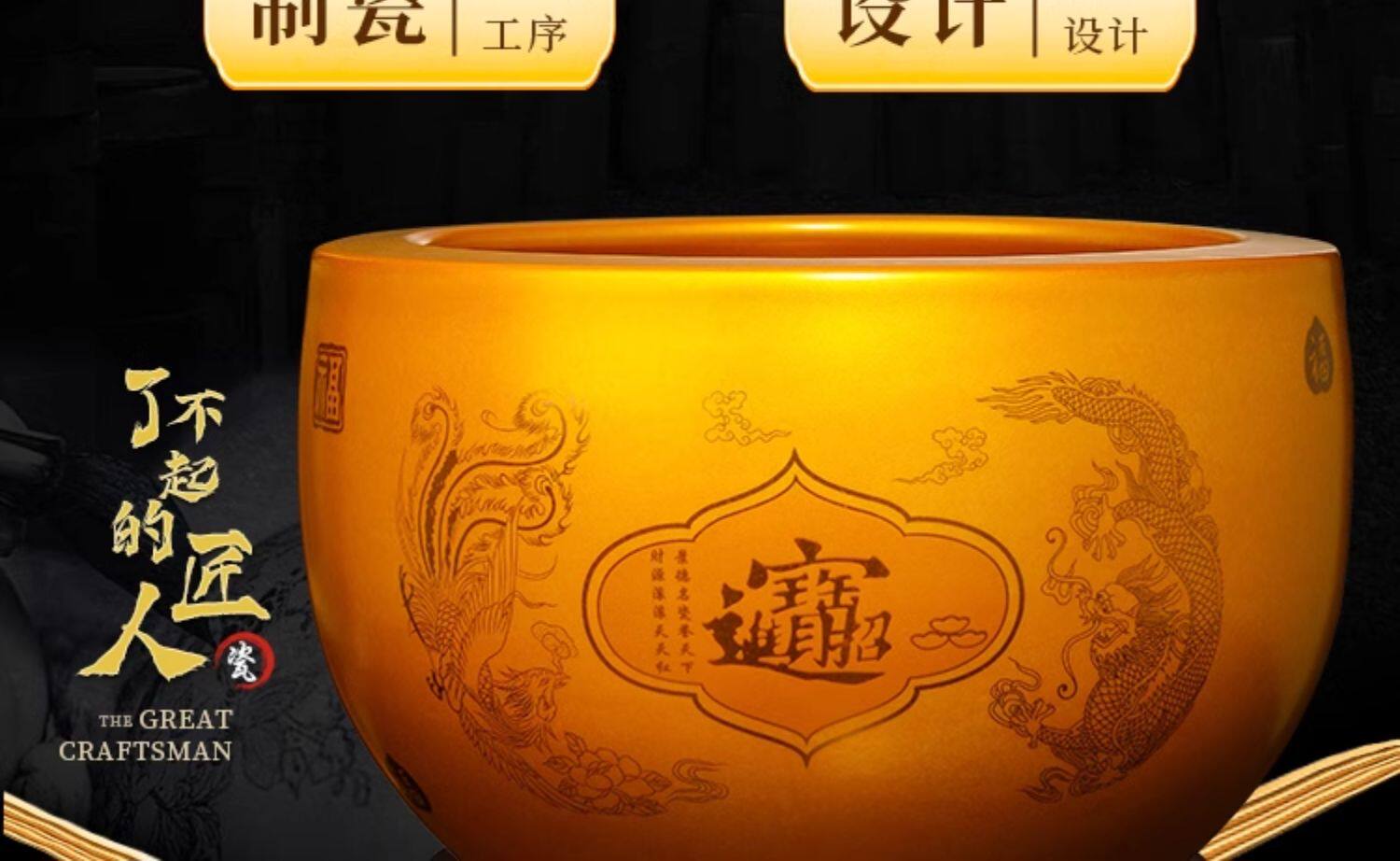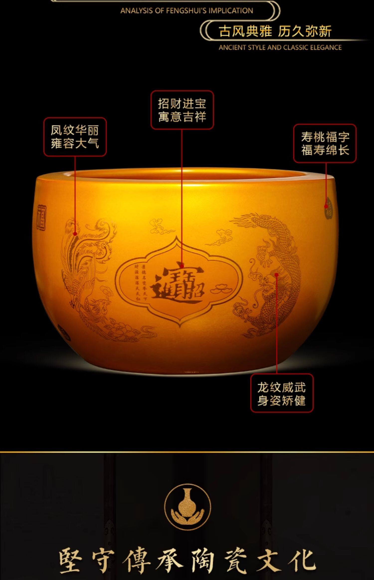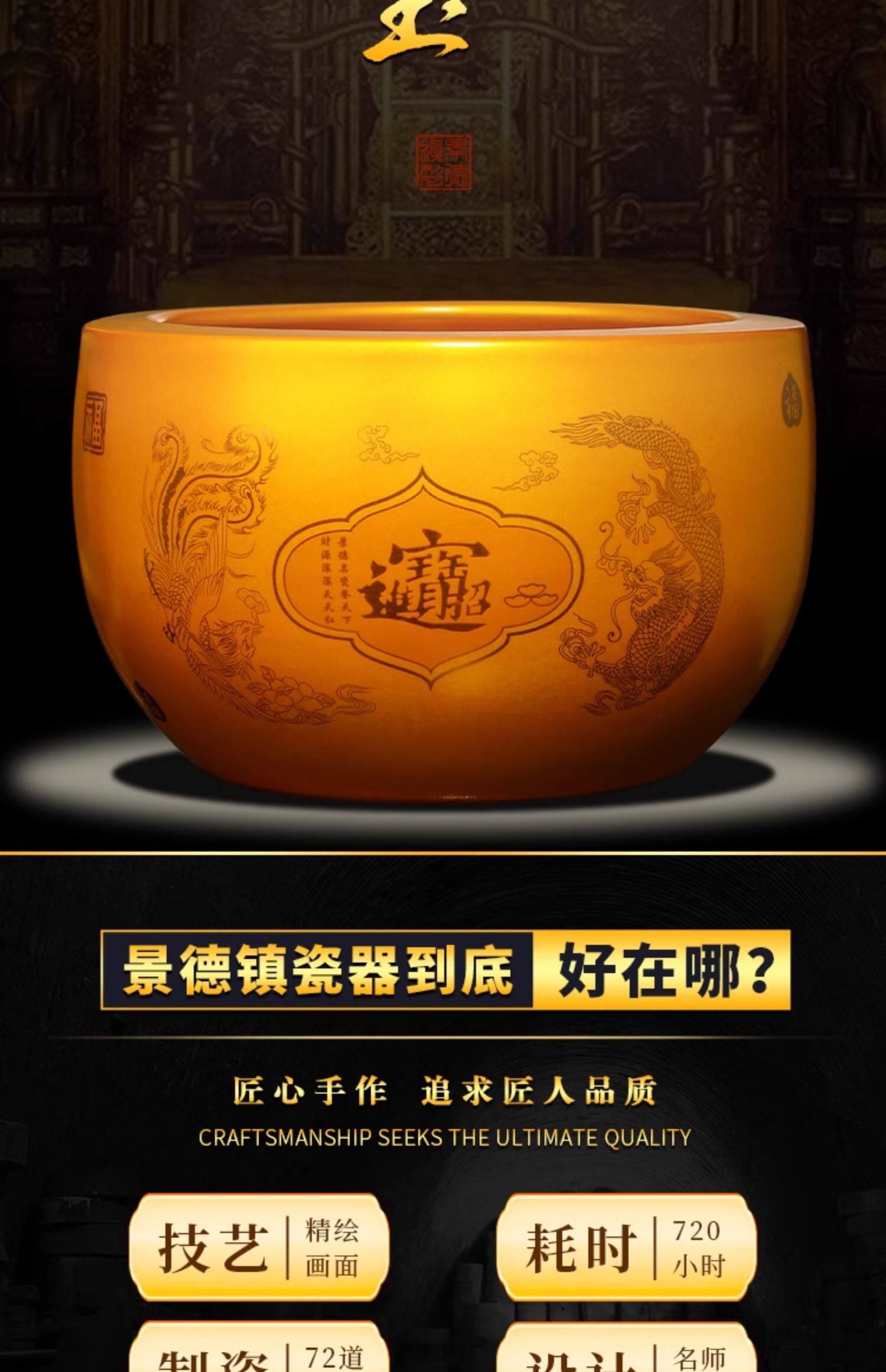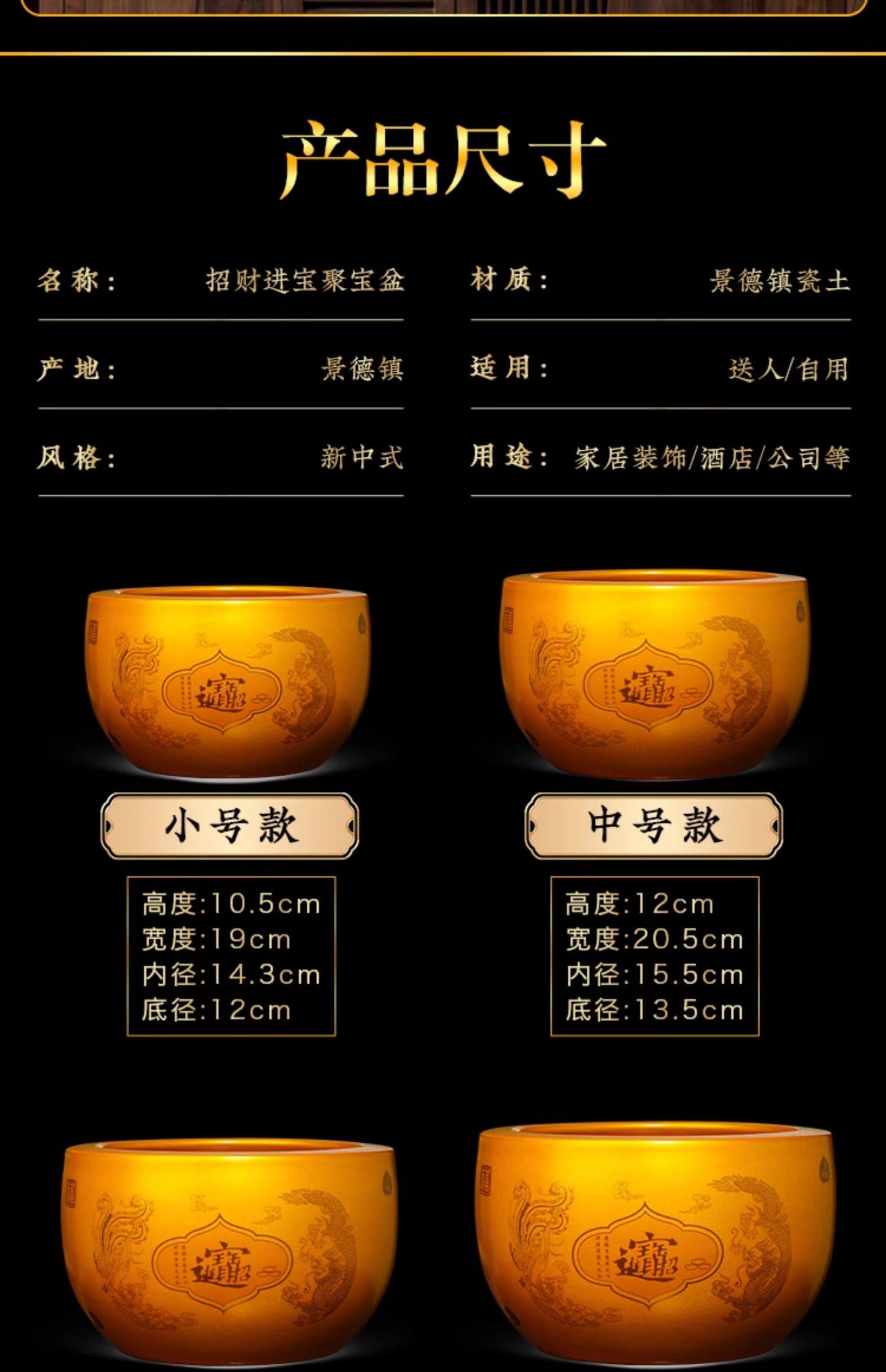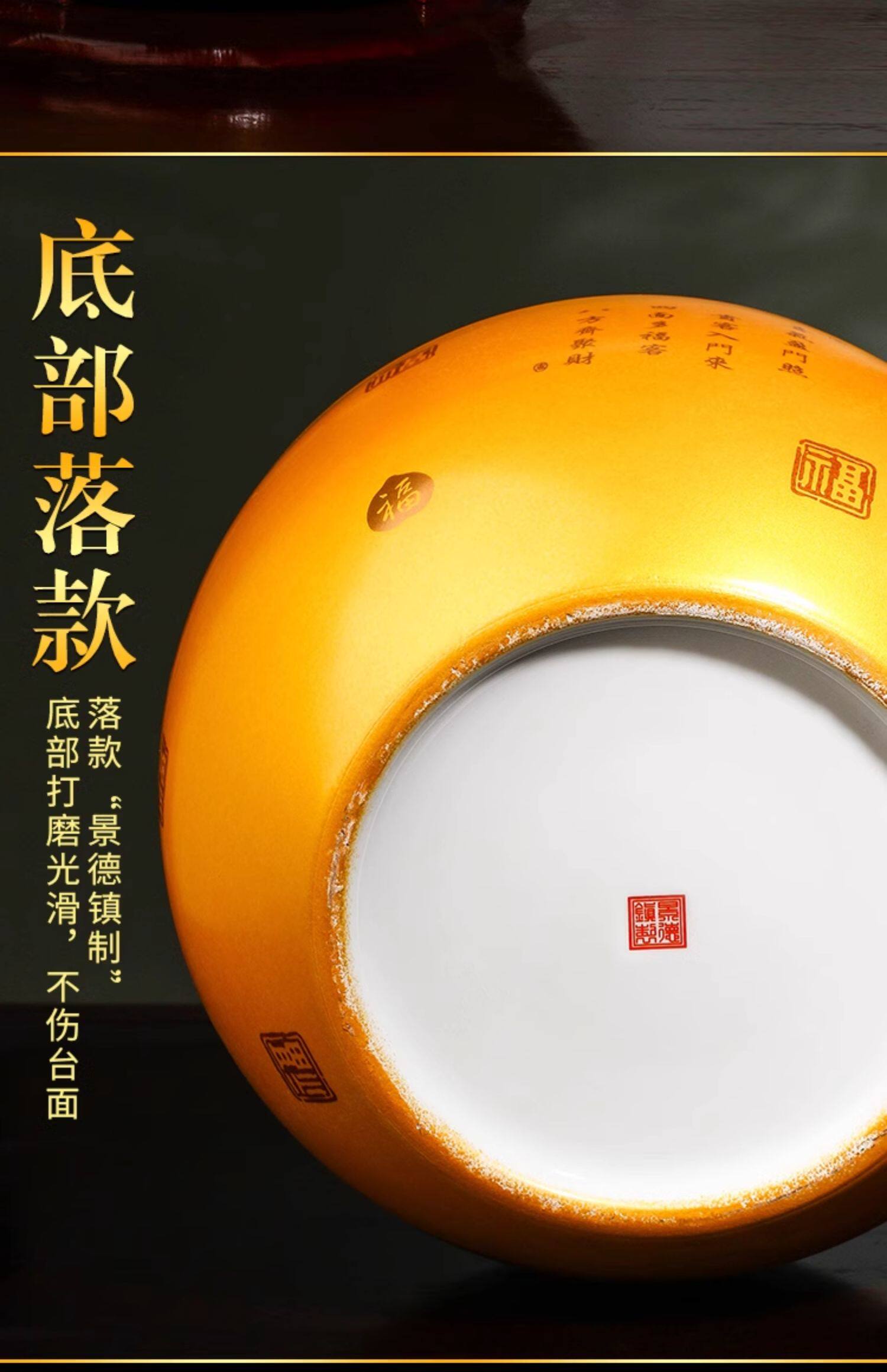 商品名称:金色聚宝盆摆件招财聚财装饰景德镇陶瓷乔迁开业办公室送礼品大号