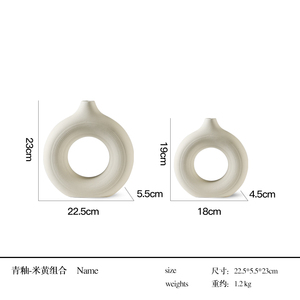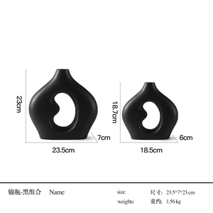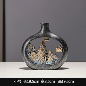 新中式复古侘寂风陶瓷果盘花瓶摆件样板间书房客厅玄关桌面装饰品