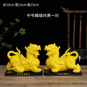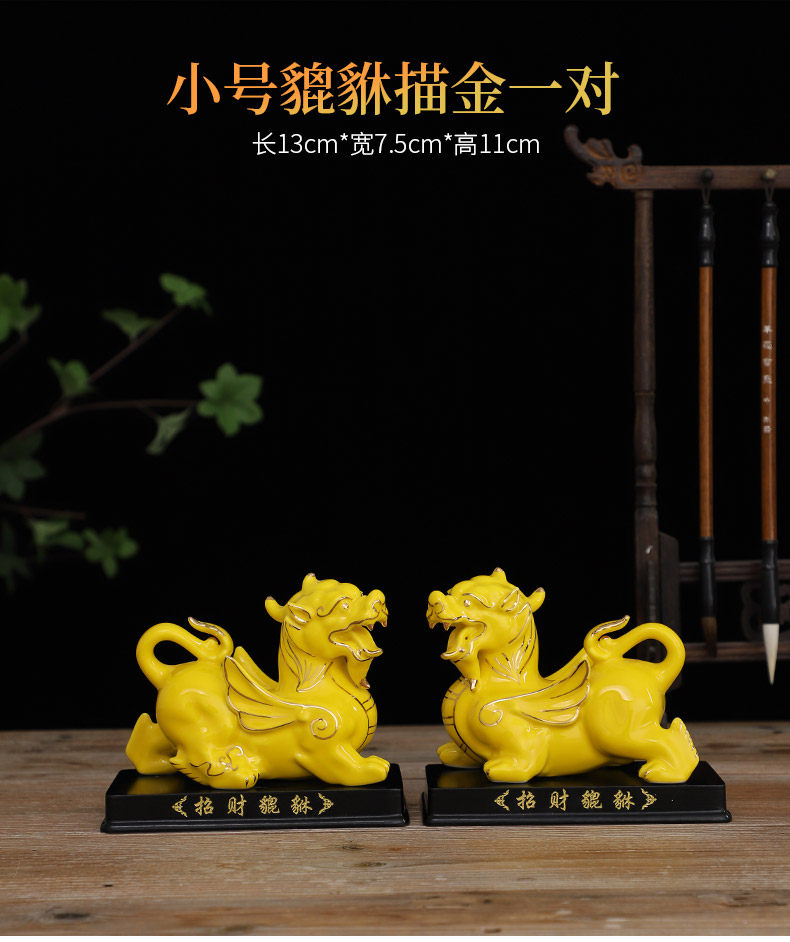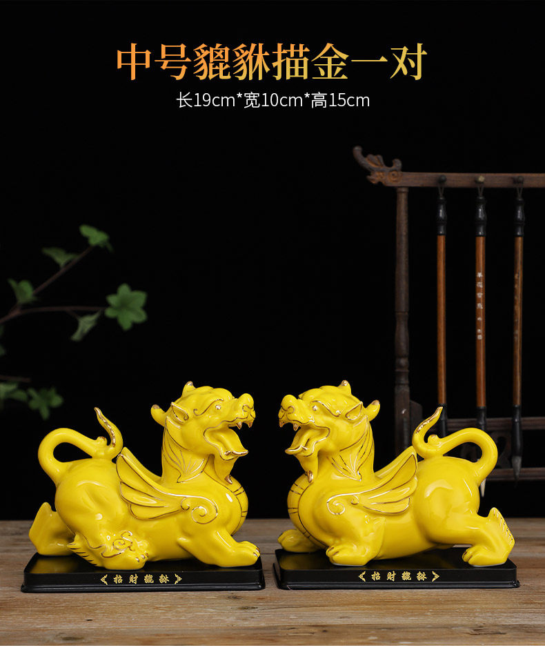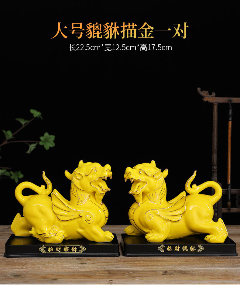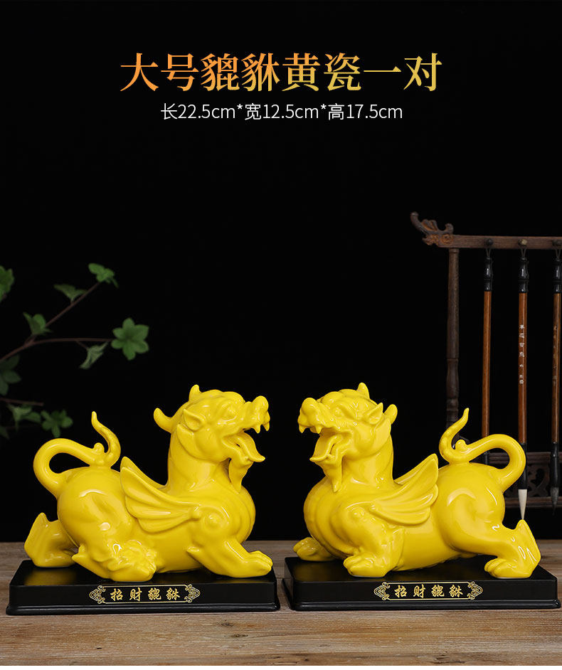 商品名称:陶瓷黄色貔貅摆件一对招财风水皮丘客厅店铺家居办公室桌装饰开业