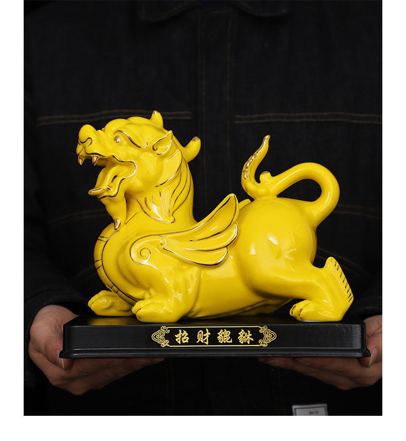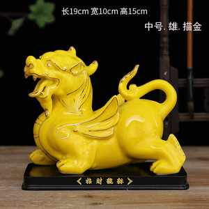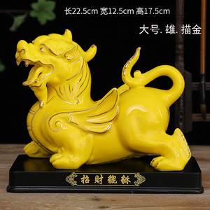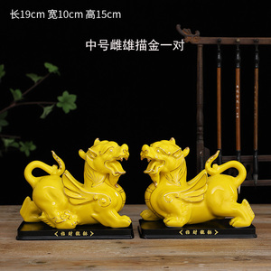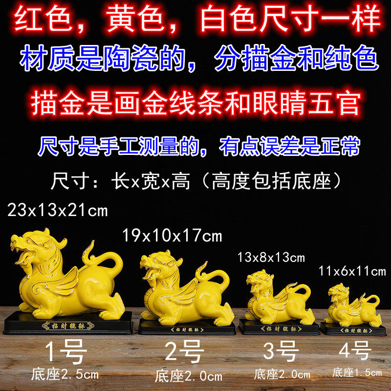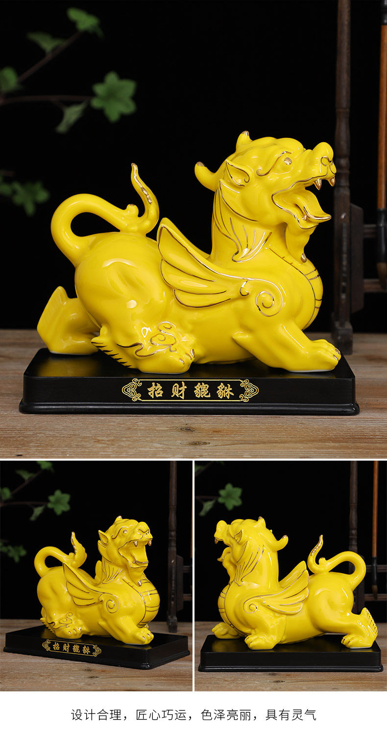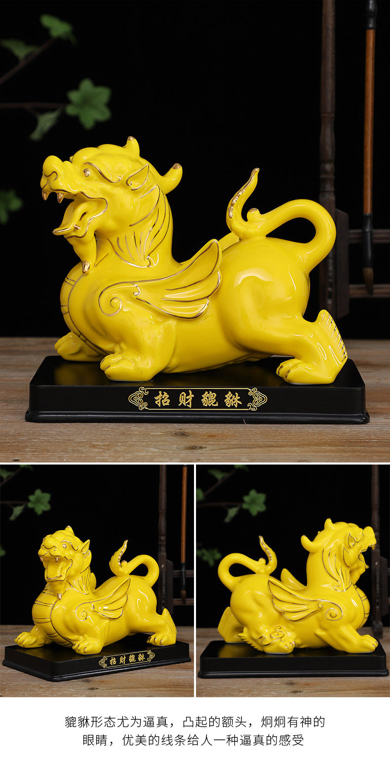商品名称:陶瓷黄色貔貅摆件一对招财风水皮丘客厅店铺家居办公室桌装饰开业